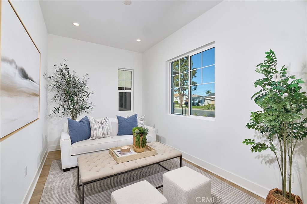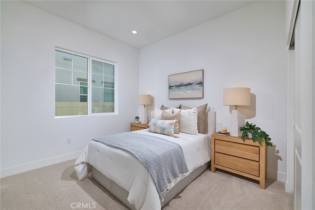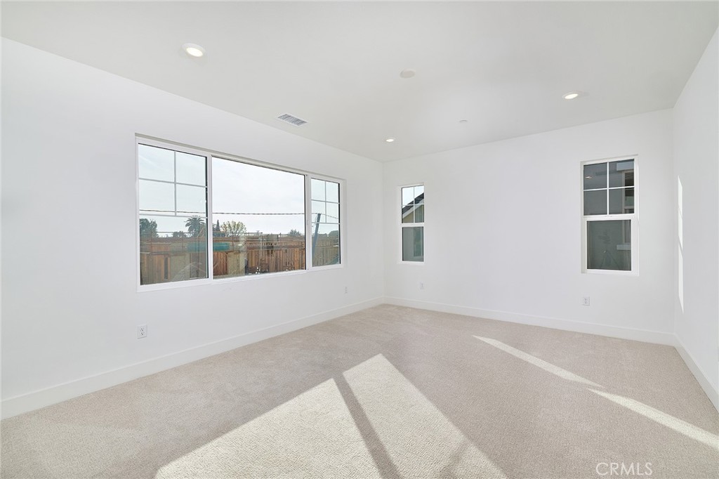 Brand-new 5 bed / 4.5 bath single-family home with a private backyard in Rosewood Village, an intimate enclave of 29 homes in Whittier. Open-concept great room flows to a gourmet kitchen with a large island and walk-in pantry; adjacent dining, versatile flex room, and a first-floor guest suite. Upstairs offers a spacious primary suite with spa-inspired bath and walk-in closet, 3 secondary bedrooms, a loft, and laundry. 2-car garage. Central location with convenient access to LA and OC job centers. Move-in November 2025. Included Upgrades: Owned solar; GE Café Series appliances including refrigerator; washer & dryer; quartz countertops in kitchen & baths; pendant lights over island; luxury vinyl on main level; tile bathroom floors; new carpet.