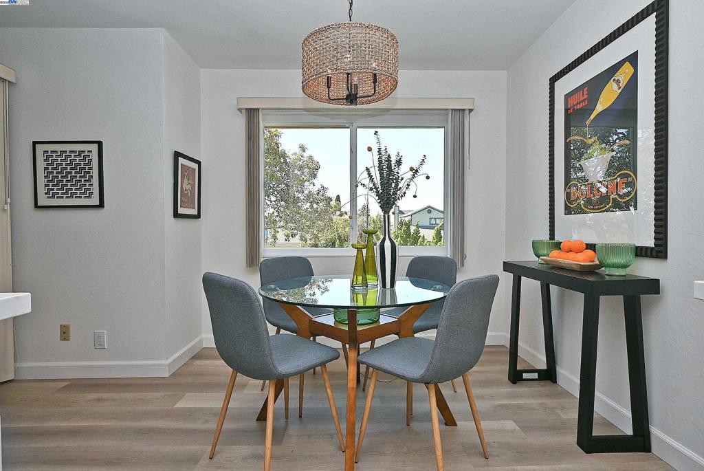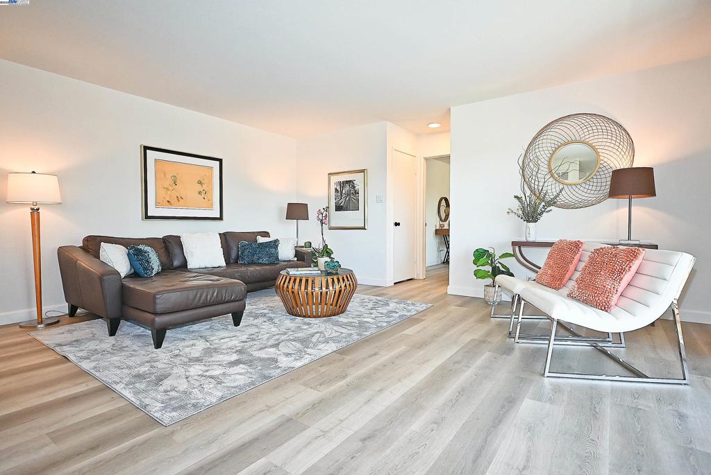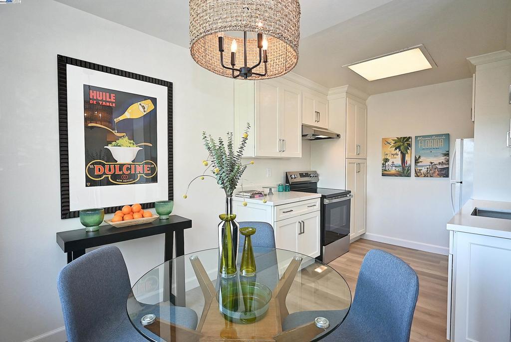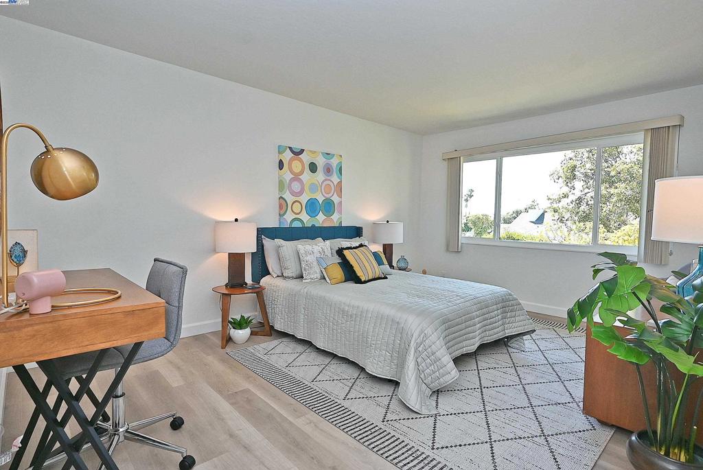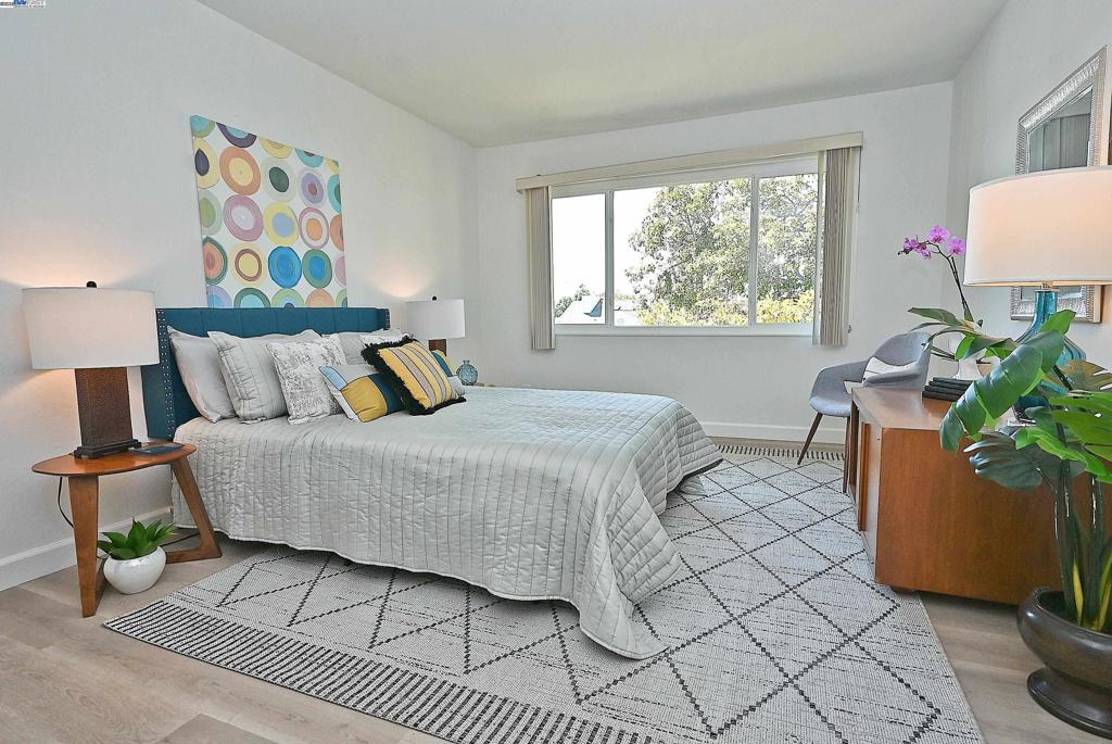 The convenience of condominium living in the heart of Alameda! Beautiful updates to this spacious one bedroom condo include kitchen cabinets, quartz countertops and some new appliances, luxury vinyl plank flooring and fresh paint throughout. Newer dual pane vinyl windows and patio doors with vertical blinds open to a shaded balcony. The spacious bedroom has a generous walk-in closet with built-in vanity. The bathroom features shower over tub, new coutertop, sink, faucet and light fixture. Located steps from South Shore Center, this top-floor unit is close to numerous shopping and dining options while also being a stone's throw from the beachfront, with its walking and biking paths and serene sunsets. South Shore Lagoon Condos boasts two swimming pools, two laundry rooms, and gated parking access. Included with this unit is one deeded carport space.