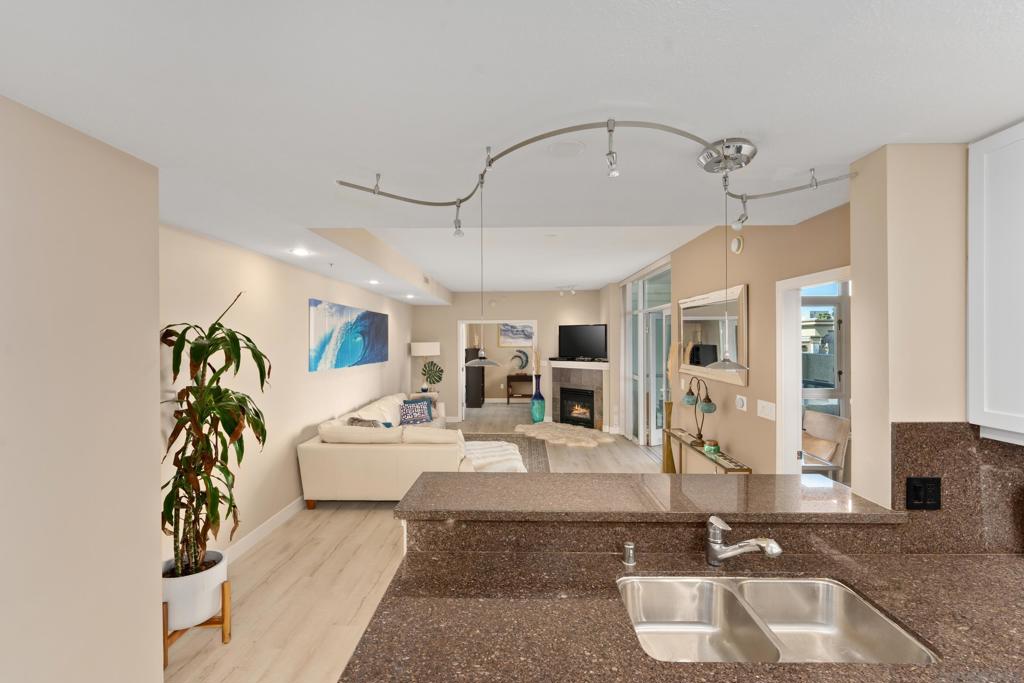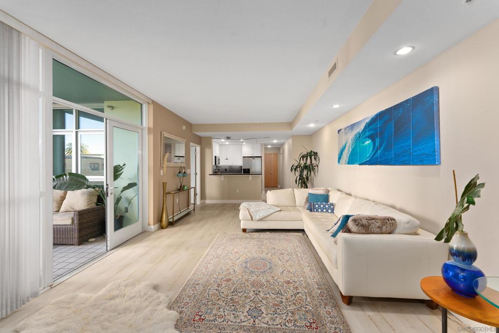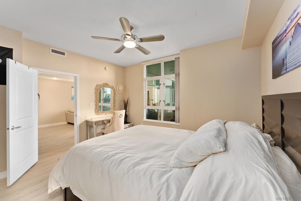 Bright, Quiet, and Updated—Refined Downtown Living at Discovery Welcome to Unit 701 at Discovery in Cortez Hill, a beautifully refreshed corner residence offering natural light, interior-facing tranquility, and modern style. Situated on the quiet side of the building, this 2-bedroom, 2-bath home enjoys peaceful courtyard and soft city views through floor-to-ceiling windows and French doors that open to a private balcony. Recent upgrades include brand new luxury vinyl plank flooring, fresh designer paint, and newly painted cabinetry that gives the space a clean, contemporary feel. The open-concept living and dining area features a cozy fireplace and a built-in mini wine fridge, while the functional layout includes an in-unit washer/dryer, assigned parking, and a separate storage unit. The spacious primary suite includes a generous walk-in closet with custom built-ins, and both bedrooms are comfortably sized with great natural light. Discovery offers full-service amenities with a recently remodeled rooftop pool and spa, upgraded fitness center with new equipment, stylish lounges, firepits, and 24-hour concierge and security. Residents also benefit from a professionally managed, well-established HOA and a yearly renewable guest street parking permit from the City of San Diego. Located in the peaceful, tree-lined neighborhood of Cortez Hill—close to Little Italy, Balboa Park, and downtown hot spots—this move-in-ready home offers the best of urban living with a sense of calm. Welcome to Discovery at Cortez Hill, where modern comfort meets refined downtown living in this beautifully updated 2-bedroom, 2-bath corner residence. Located on the 7th floor, Unit 701 features brand new luxury vinyl plank flooring, fresh designer paint, and a light-filled layout that offers both style and functionality. Enjoy floor-to-ceiling windows, a private balcony with peaceful city and courtyard views, and a split-bedroom design ideal for privacy or remote work. The spacious primary suite includes a generous walk-in closet with custom built-in shelving, perfect for streamlined storage. Discovery is a full-service luxury building offering a recently renovated amenities floor, including a resort-style rooftop pool and spa, upgraded fitness center with new equipment, stylish lounge areas, and firepits for relaxed evening gatherings. With 24-hour concierge, security, and secure parking, every detail is designed for convenience and peace of mind. Located in the charming, tree-lined neighborhood of Cortez Hill, you’re just minutes to Little Italy, Balboa Park, and the vibrant energy of downtown. Move-in ready with modern upgrades—discover elevated urban living at Discovery.