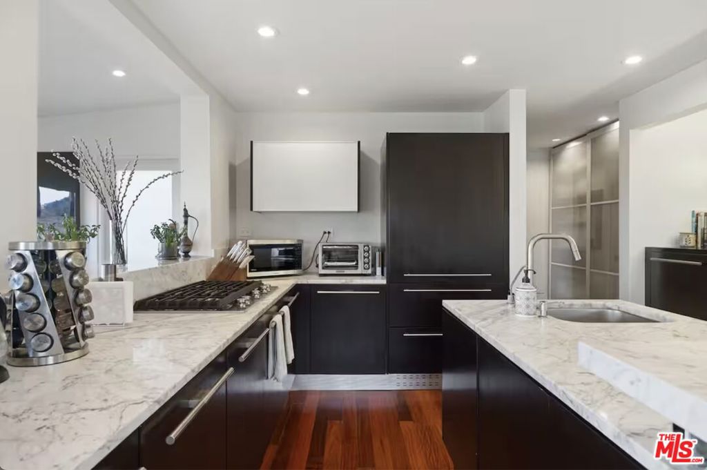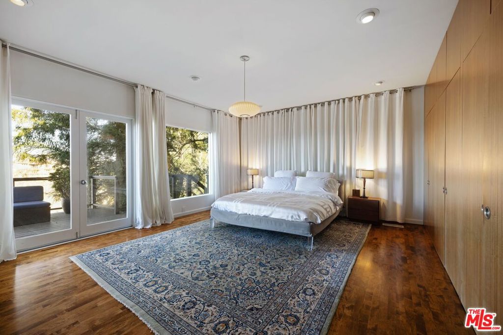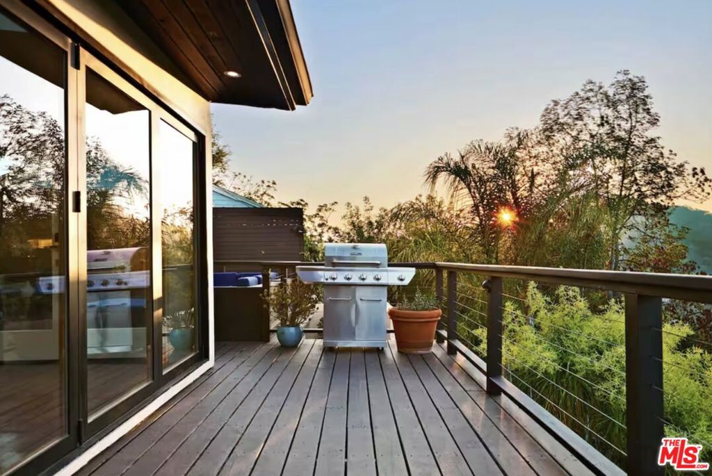 Iconic modern masterpiece offering luxury, thoughtful design, and breathtaking views. FULLY FURNISHED and move-in ready with cookware, dishes, and linens, this pristine 3-bedroom, 3-bath home also features a large family den with kitchenette as well as a converted garage perfect as a studio, office, maid's quarters or 4th bedroom. Seamless indoor-outdoor living connects wide glass doors to the expansive 2,000 sq. ft. deck with outdoor seating and a fully equipped outdoor kitchen. The lush terrace, shaded by mature trees, includes a private dry sauna and opens to a large flat yard. Light and bright with clean lines throughout, the home boasts two fireplaces, Brazilian Cherry and Oak hardwood floors, and a master suite with a full wall of built-in Walnut closets. The Bontempi kitchen showcases top-of-the-line appliances, including a Sub-Zero fridge, Miele cooktop, and Thermador microwave/oven, complemented by Carrara marble countertops and Wenge wood cabinets. Additional amenities include flat-screen TVs, a washer/dryer, and a purified filtered water system. Conveniently located just minutes from Beverly Hills and Studio City. Make this dream home yours today!