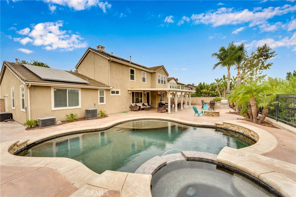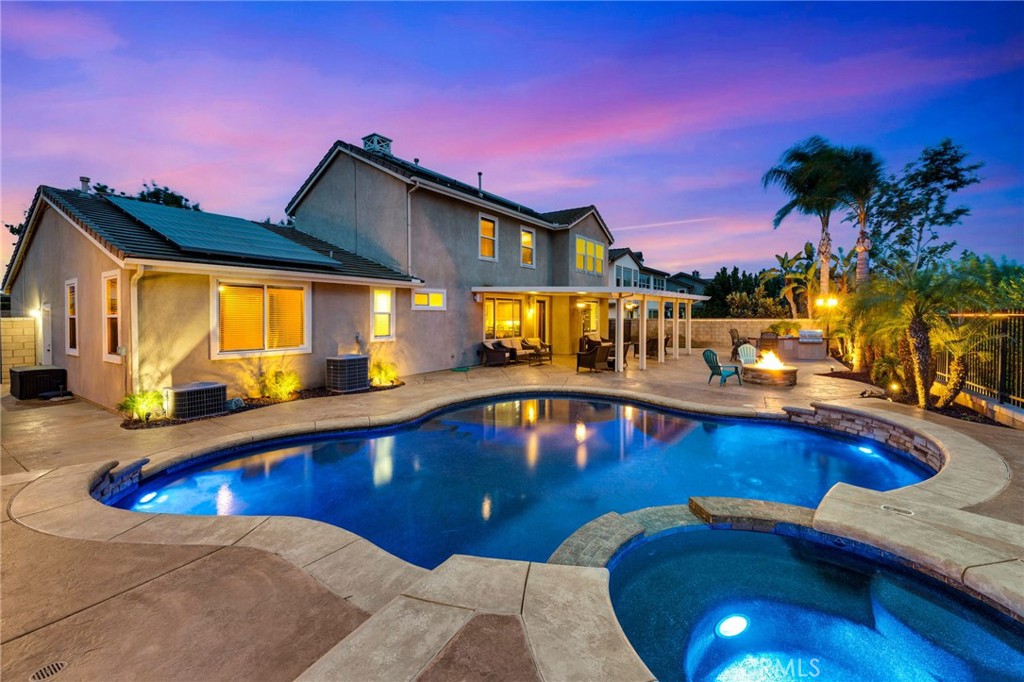 Welcome to this spectacular home in the exclusive College Park neighborhood of Chino! This spacious residence offers 4 bedrooms, 4 bathrooms, over 4,500 sqft of living space, and a large lot exceeding 10,000 sqft — perfect for modern living, privacy, and entertaining. Inside, you'll find an open floor plan with a versatile bonus room ideal for an office or additional bedroom. The spacious kitchen features built-in oven, stove, gas range, a large island with sink and dishwasher, overlooking the living room and backyard. A private laundry room with cabinets and a sink provides added convenience. The lower level includes a master suite with a full private bathroom, shower, spa-like tub, and ample closet space. Upstairs boasts a grand loft for entertaining, a full bathroom with double sinks, and two bedrooms with front yard views. Another impressive master suite upstairs offers a large living space, access to a full bathroom with double sinks, bathtub, shower, and stunning backyard views. The backyard is a private retreat, featuring a dog run with access to the kitchen, a covered patio with a built-in grill and mini-fridge, and a saltwater pebble-tech pool — perfect for family gatherings and guests. The home has a Tesla solar system and can park up to 3 cars in the garage and driveway. A Zen courtyard in the center adds tranquility, and HOA amenities include a 24-hour gym, clubhouse, pools, ping pong, and more. Located conveniently near shopping and freeways (60 and 71), this elegant property combines luxury, function, and an ideal neighborhood setting. Welcome to your dream home!