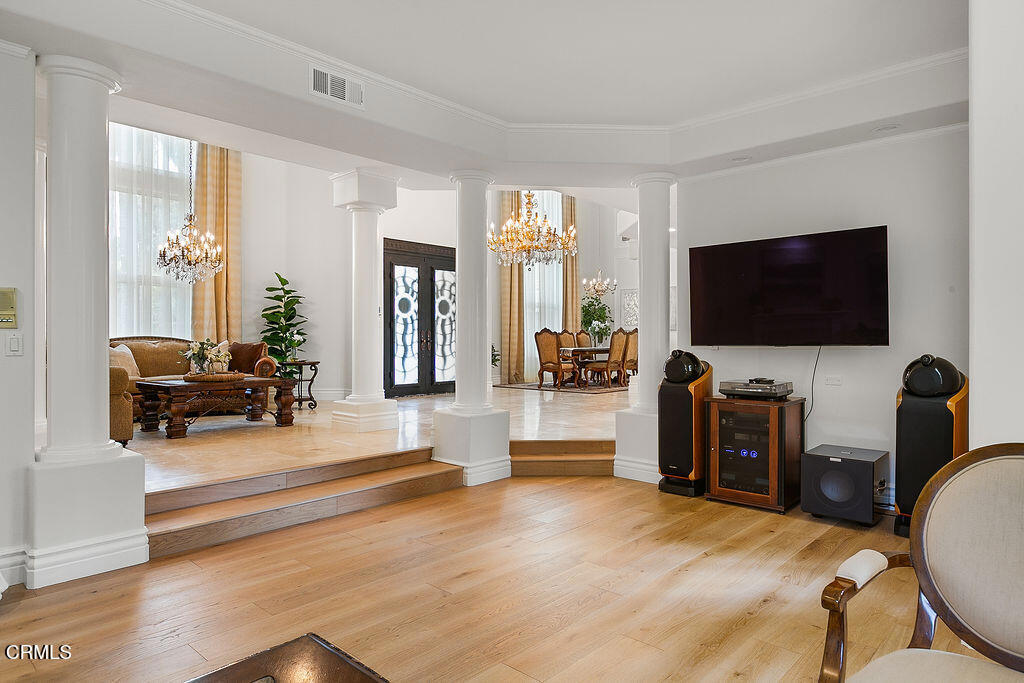 Extraordinary modern Mediterranean in gated Camelot Estates! Situated on a prime acre corner lot in prestigious Santa Rosa Valley, this completely reimagined two-story villa showcases timeless architectural elegance with contemporary luxury. Over 5,400 sq ft 'under roof,' this residence welcomes with a grand foyer, soaring volume ceilings, columns, and archways, all bathed in natural light. The redesigned island kitchen features top-tier appliances, custom cabinetry, and opens seamlessly to the family room. An entertainer's dream, the home boasts a gourmet indoor kitchen with commercial venting, rotisserie, smoker with solar-powered vent, and stainless barbecue. Offering 5 spacious bedrooms and 5 baths--including oversized ensuite secondary bedrooms--plus a dedicated office/library. Resort-inspired grounds include a dazzling palm-encircled pool with covered pavilion, peaceful waterfall koi pond, fruit orchard, lush landscaping, and sports court, all with complete privacy. A rare opportunity to own a turnkey Camelot Estates masterpiece designed for luxury living and grand entertaining.