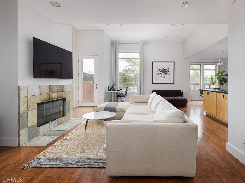 This beautifully updated 2 bedroom, 2.5 bathroom home offers just under 1800 sq ft of thoughtfully designed living space. The main level features new vinyl plank flooring, a private bedroom with an en-suite bathroom as well as two additional flexible spaces that can be used as a family room, office space, and/or a garage. The second floor showcases hardwood floors and an open-concept layout between the spacious kitchen and living room, complete with an electric fireplace. The kitchen itself has a large island, wine fridge, dishwasher, and plenty of storage.The spacious primary suite features a walk-in closet, a dual vanity bathroom, a large shower with seating, and a private balcony. A convenient half bath and stacked laundry are also located upstairs. The updated stairwell off the living room leads to a brand-new private deck with gas and water lines and electrical outlets—ideal for entertaining. Additional highlights include new Milgard windows, plenty of parking in the garage and/or carport, and ample storage under the stairs.