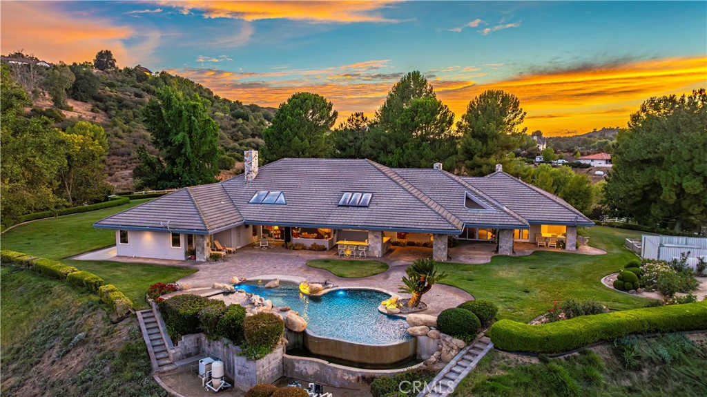 Welcome to La Cresta where this amenity-rich equestrian estate is available for the first time ever. The main house spans roughly 5,000 square feet within a sprawling floor plan designed with soaring ceilings and high end finishes at every turn. Enjoy open concept living with panoramic seamless glass windows that bring incredible views into nearly every room of the house. The massive gourmet kitchen offers a breakfast bar, center island with a prep sink and ice maker, double ovens, and a large walk in pantry with another prep sink. There is plenty of room for family and guests with separate family and living rooms, a formal dining room, and four bedrooms, five bathrooms and a library. The backyard is an entertainer's dream with an infinity edge swimming pool, jacuzzi, barbecue, sink, poolside bathroom, and again, those incredible views. While the main house offers an oversized three car garage, after a quick walk down to the barn you’ll find an additional four car garage along with a massive pull through RV garage. In the breezeway of the barn you’ll find a large tack room, feed room, wash racks and four horse stalls. The entire second level of the barn is a large two bedroom one bathroom guest house that also offers incredible views, with a studio apartment adjacent to the garage down below. At the west end of the property the equestrian amenities continue with a large arena and two fully fenced grass turn outs. Move right in with confidence knowing that this home has everything you need to live comfortably with a garden, fruit trees, solar power, back up generator, city water connection, two wells, two water storage tanks, and hard wired security camera system. Schedule a private showing today and seize the rare opportunity to own this fine equestrian estate.