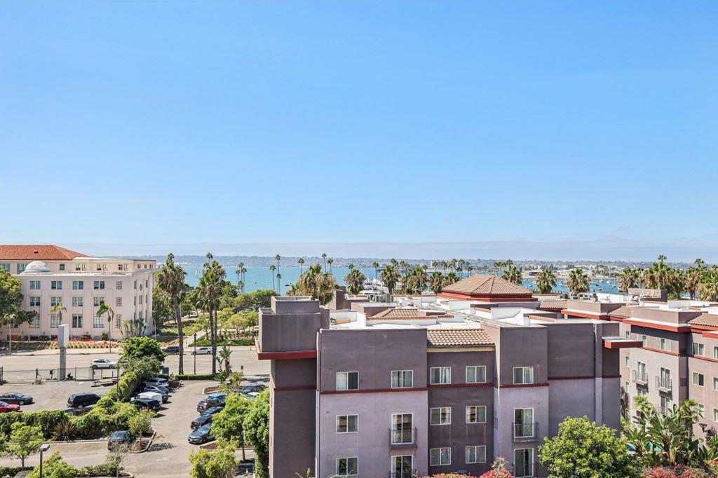 Experience breathtaking city and bay views from the top-floor, corner penthouse in DOMA—right in the heart of Little Italy. Rarely available and single-level, this 2 bedroom / 2.5 bathroom, 1,375 SF residence pairs dramatic high ceilings and an open, airy floor plan with wall-to-wall urban energy and sparkling water vistas from the living room and both bedrooms. A spacious private balcony —perfect for grilling and sunset watching— extends your living space outdoors. Two reserved, side-by-side parking spaces are conveniently located near the elevator for effortless city living. Inside, thoughtful upgrades elevate everyday life: luxury vinyl plank floors, new carpet, fresh paint, and a reimagined chef’s kitchen with quartz counters, new cabinetry, sink, and backsplash, plus a suite of newer smart appliances (cooktop and fridge). The living area features custom wood paneling by a local artist, while electric smart shades in the living room and bedroom dial in light and privacy with a tap. Both bathrooms showcase new tiling; the primary suite shines with a fully redone bath (new shower, dual sinks, lighting, cabinetry, and quartz backdrop) and a custom built-in closet. Ample cabinetry maximizes storage throughout and a spacious in-unit laundry room adds everyday convenience. Step outside your door to Little Italy’s restaurants, cafés, and weekend mercato—or head upstairs to DOMA’s rooftop deck for sunsets and the fitness room for on-site wellness. This is the one you’ve been waiting for!