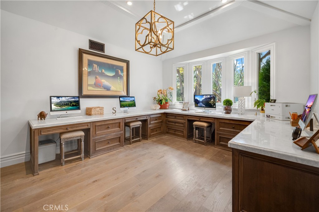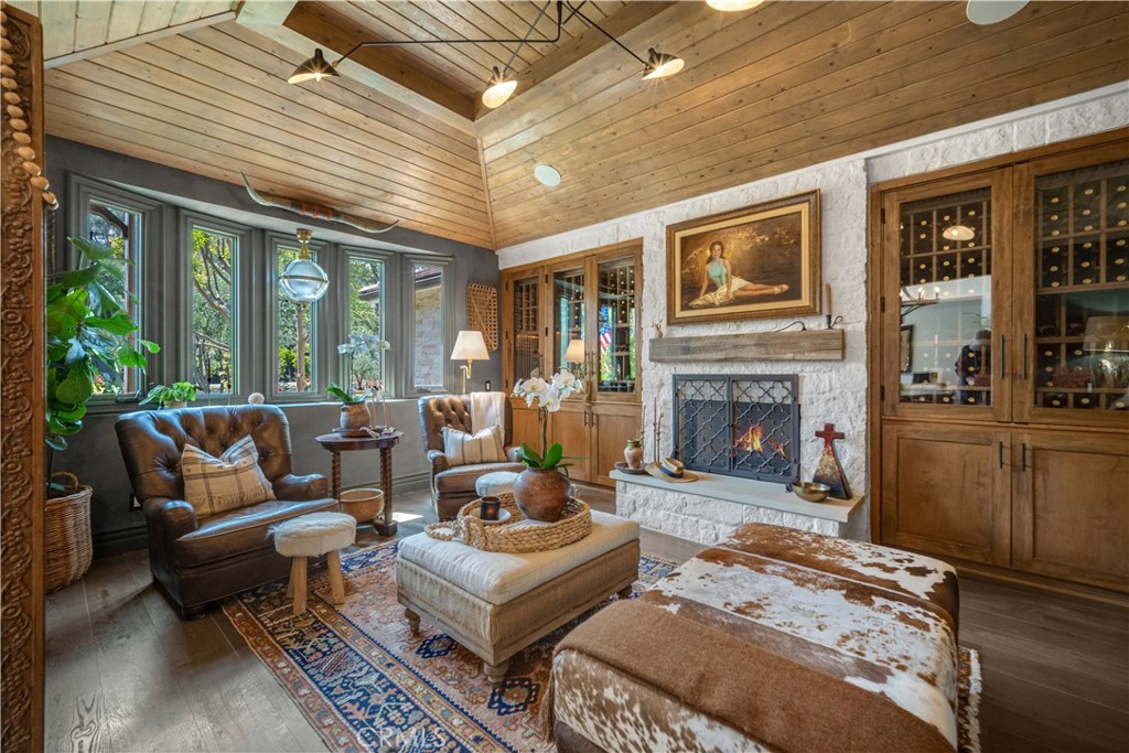 This Beautiful Country Vineyard Estate in the Heart of Hidden Hills has been lovingly remodeled by its designer/owner, Catherine Sorensen, with exquisite craftsmanship and timeless style. This extraordinary home nestled on a private road offers the utmost in luxury, privacy, and sophistication with no detail overlooked you feel like you are in a 5 star boutique hotel. Enter through a dramatic glass-and-steel pivot door into a home where every detail has been thoughtfully curated. The heart of the home is the stunning open-concept kitchen, featuring a large quartzite island, custom walnut cabinetry, built-in banquette area, Waterworks fixtures, Wolf range, Miele coffee station, and steel beam construction accents, a stunning custom hood and a 36" each Sub-Zero side by side Fridge and Freezer. Bi-fold doors open wide to the backyard, creating seamless indoor-outdoor flow—perfect for entertaining family and friends. The serene primary suite is a sanctuary, boasting reclaimed wood ceilings, a copper soaking tub, heated floors, steam shower, sauna, and Newport Brass and Walker Zanger finishes. With 5 bedrooms, 5 bathrooms, an office, and a wine room with wood-paneled ceilings and steel beams, and room for a guest house , the home exudes quality throughout. Wide-plank White Oak floors , quartzite counters, and a Sonos sound system complete the interiors. The grounds are a Mediterranean dream: drought-tolerant landscaping, lush lawns, a sparkling pool/spa, outdoor kitchen, producing vineyard (Cabernet & Syrah), orchard with citrus, fig, peach, and pomegranate, greenhouse garden, chicken coop, goat area, and horse zone with plumbing. Exterior highlights include smooth stucco, real limestone, low-voltage lighting, and enchanting pathways framed by roses, rosemary, lavender, and espaliered apple vines.Located in the coveted Hidden Hills community with 25 miles of bridle trails, equestrian amenities, tennis courts, pool, and a performing arts theater. Situated within the prestigious Las Virgenes School District and in close proximity to some of Southern California’s most elite private schools.