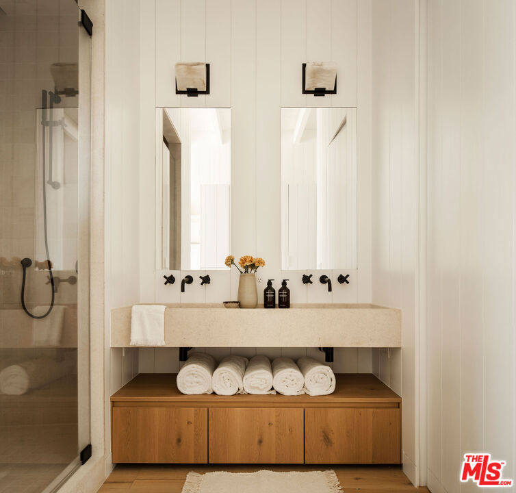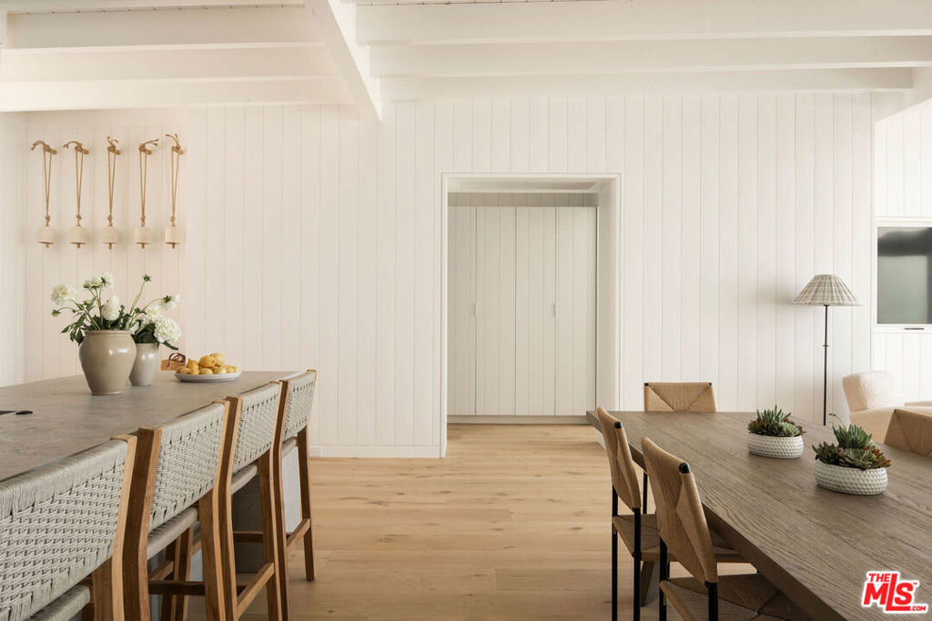 Situated off of PCH on the Private Escondido Beach Road, sits this Mid-Century gem on 50 feet of the exclusive and coveted Escondido Beach. Embrace the opportunity to call this special property home, that has been extensively and meticulously reimagined by design team Warren Garrett. The newly completed home elegantly blends timeless materials with modern amenities and exudes a restrained sophistication. The turnkey beachfront residence offers 4 bedrooms, 4.5 baths, two levels of expansive waterfront decks and features a gorgeous french grey plaster pool that takes center stage only a few steps from the sand. This idyllic beach house is conveniently located steps away from the iconic Geoffrey's restaurant and a leisurely beachside stroll to Paradise Cove Beach Cafe. Located near the end of a private street, the peaceful retreat enjoys ample separation from Pacific Coast Highway. The clean design of the modest exterior facade is centered by an arched solid steel front door opening to panoramic ocean views framed with white oak floors and soaring exposed beam ceilings. An open gourmet kitchen showcases a grand Italian limestone island, exquisite stone shelving, a La Cornue range and new high end appliances. The main level features 3 bedrooms with spa-like en-suite bathrooms, while the lower level offers a 4th bedroom and full bathroom with breathtaking views of the pool and ocean beyond. A secondary bar and kitchen as well as a cozy interior lounge were designed to make this the perfect setting for pool and beachside entertaining. This home is furnished and is move-in ready with brand new furnishings from Jenni Kayne Home, experience the best of coastal living in this unique Malibu beachfront paradise.