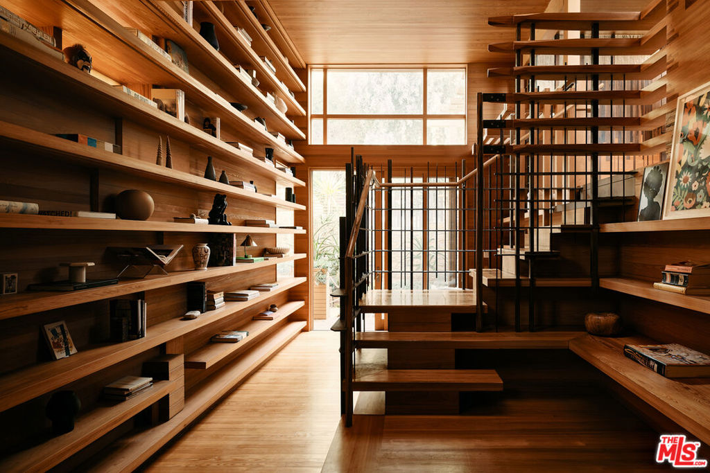 This architectural marvel features an intricate blend of vertical and horizontal planes of wood, stone, and metal, bathed in natural light streaming through sliding glass walls, strategically placed skylights, and an artistic glass floor. Designed by architect Jay Vanos, the finest woodworkers used American Southern cypress for its durability and golden hue on the floors and walls, complemented by a soaring wave redwood ceiling. With ocean views from almost every room, the home boasts a great room with a fireplace, a sitting/dining area, a gourmet kitchen with high-end appliances, and glass walls that open to an outdoor deck perfect for intimate or lavish entertaining. It includes three spacious master suites with fireplaces, luxurious spa-like baths, large closets, and ocean view decks, along with two additional bedrooms. Additional spaces include a sun-filled office/den, a cozy reading/library area, an art studio, an indoor sauna, a zen-style wellness area with sauna and cold plunge, and more. Steps lead to a lower-level surfboard storage area and provide direct access to the beach and renowned Latigo surf spot, making it an ideal home for surfing enthusiasts.