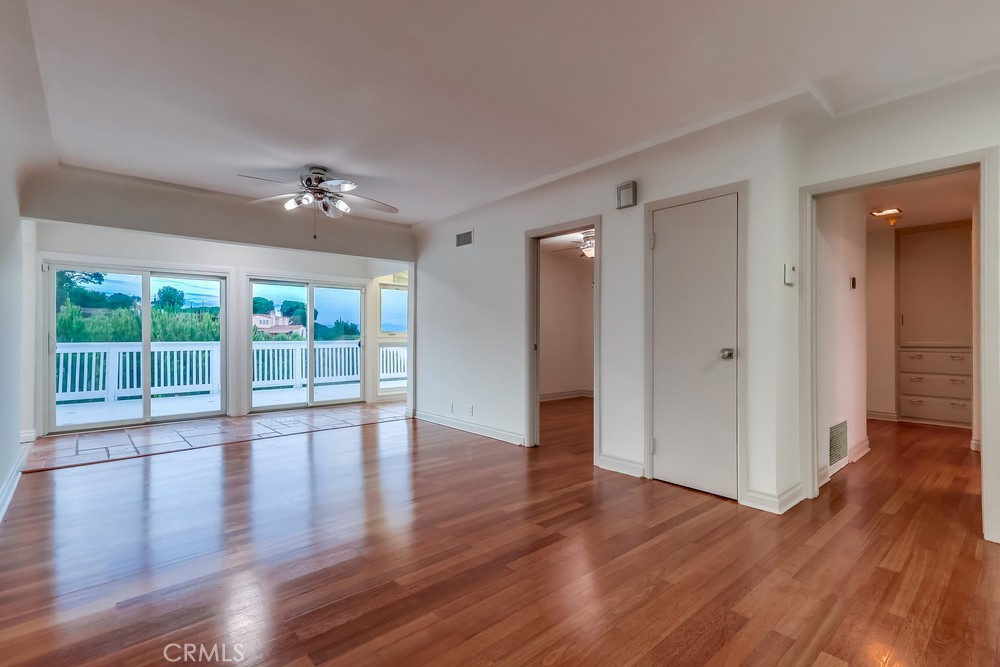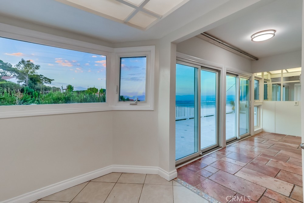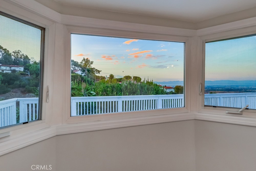 Charming single-level home perfectly situated in the desirable Red Tile Roof neighborhood of Miraleste. Step inside to find warm cherry hardwood floors and abundant natural light streaming through Andersen windows. Both the living room and primary bedroom open through sliding glass doors to an expansive patio, where sweeping canyon and city views set the stage for unforgettable entertaining or peaceful evenings under the stars. A serene water feature in the side yard, visible from the living room, enhances the sense of peace and harmony that defines this home. The kitchen features granite countertops, tile flooring, a double oven, and a professional-grade six-burner stove. The guest bathroom has been enhanced with a newly installed double vanity, bringing both convenience and style. Beyond the interiors, the grounds are a lush sanctuary. An edible landscape of peach, apple, guava, lemon, pomegranate, avocado, fig, pear, and mulberry trees, along with vibrant lemon grass, provides a fragrant, colorful, and fruitful setting year-round. The front gardens deliver striking curb appeal, while the expansive side yard and driveway allow ample room for recreational toys or additional vehicles. Home exterior and interior freshly painted throughout includes forced air heating and cooling and is only a 5 minute walk to the Miraleste Plaza.