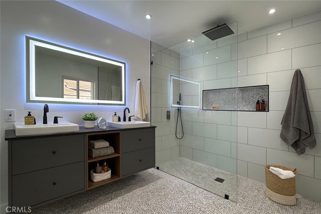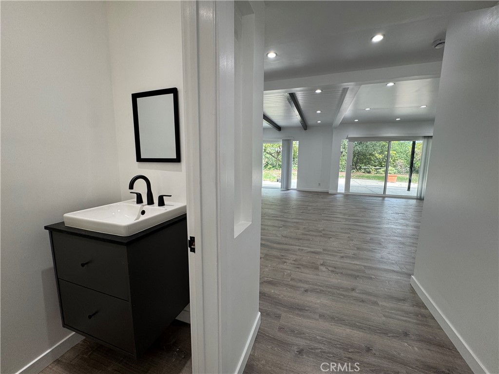 Upper Bel Air | 3 Bed, 2.5 Bath | EV Charging | Garage | Backyard | Roscomare School District This beautifully updated 3-bedroom, 2.5-bath residence blends timeless post-and-beam architecture with thoughtful modern upgrades. Clean lines, expansive windows, and an open-concept design create a seamless connection between indoor comfort and outdoor living. The sunlit living room highlights dramatic exposed wood beams and luxury vinyl plank flooring, with sliding glass doors opening to a spacious patio, perfect for relaxed gatherings or effortless entertaining. The renovated kitchen and bathrooms feature custom fixtures, quartz countertops, and vanities, balancing contemporary finishes with the home’s original architectural character. The generous primary suite includes exposed beams, recessed lighting, and a large closet. Additional features include a garage with EV fast charging and ample storage. Central air conditioning and heating will keep you comfortable. Located within Roscomare Elementary School District, offering easy access to both the Valley and the Westside.