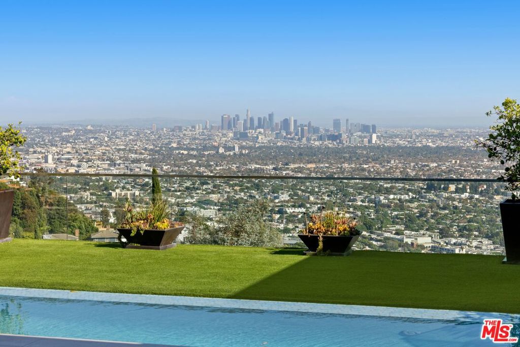 This sleek Paul McClean-designed contemporary home is located on the coveted eastern side of Blue Jay Way, offering one of the most desirable perspectives in prime Hollywood Hills' Bird Streets. The home's open-concept design features soaring ceilings and disappearing Fleetwood doors that create a seamless flow for indoor-outdoor living. The open-concept gourmet kitchen is equipped with top-of-the-line Miele appliances, a large island, and bar top seating. Fall asleep to city lights and wake to the sunrise in the glass-wrapped primary suite, featuring dual bathrooms and closets. Outside, you'll find a newly refinished pool with chaise lounges and an outdoor cabana, complete with a built-in BBQ, fireplace, and heaters. Available fully furnished for month-to-month or long-term leasing. Additional photography is available upon request.