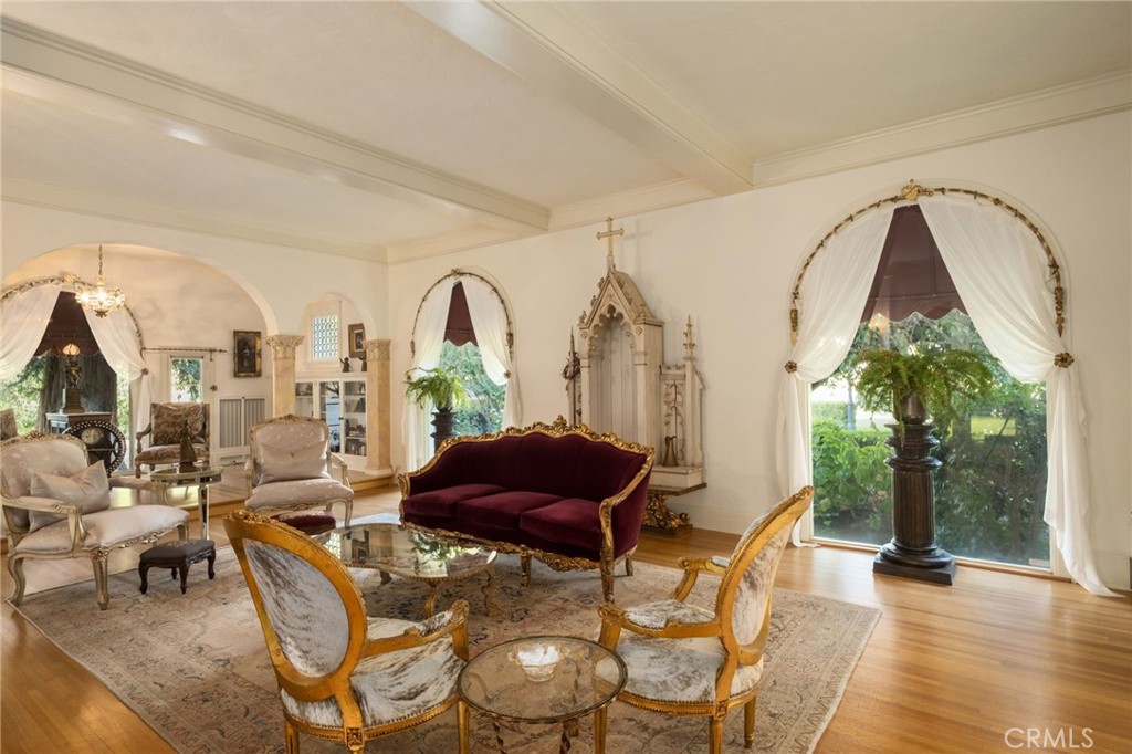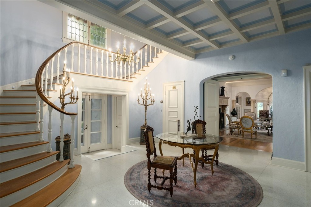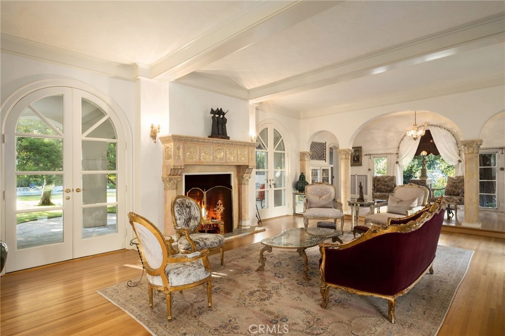 This 1928 Sunset Boulevard Mediterranean Revival residence, situated on a 1.76 acre lot on Christmas Tree Lane in Old Fig Garden, was designed by renowned architect Rafael Lake for the Bernhauer family. As President of the then Fresno Planing Mill Co., Mr. Bernhauer infused his vision and craftsmanship into every detail of this home, which includes Mahogany millwork archways, coffered ceilings and so much more. As you enter thru the Arch Top Mahogany Double Doors, you are greeted by a Grand Foyer and a beautiful curved staircase. To the right is the Spacious Formal Living Room offering a stunning Fireplace, an adjacent elevated sitting space, and to complete this wing of the home, an Isolated Bedroom w/En-Suite Bath. To the left of the Foyer is the grand Formal Dining Room, boasting a Curved Bay Window that floods the room with natural light and can accommodate a large gathering of family and friends. Two Butler Pantries, both with sinks and an abundance of counter space, expand on the spacious Kitchen space for entertaining. A second staircase to the upstairs is situated between the two Butler Pantries, as well as the stairs to the basement which boasts a beautiful Wine Room. The Chef's Kitchen features Exquisite Portuguese Tiles, Wolf Range, Wall Oven, Built-in Refrigerator, Built-in Griddle, Informal Dining Area, and a Pantry. A lovely Studio/Family room is located adjacent to the Kitchen and offers a Fireplace and a wall of Shuttered Windows, which makes it a perfect room for relaxation. The over-sized Laundry Room featuring a Sink, ample Counter Space, Washer/Dryer and a Freezer, plus another Spacious Isolated Bedroom with adjacent Bath complete this section of the home. The Upstairs features the Primary Bedroom with an En-suite Bath, Dressing Area, walk-in Closet and access to a Balcony which views the rear garden. Bedroom # 4 views the front garden, Bedroom #5 features an En-Suite Bath, and Bedroom #6 and #7 which share a Jack-n-Jill Bath complete the Upstairs The Guest House is just steps away from the house and features a Spacious Bedroom, Kitchen with Dining Area, a Shower Bath, plus a storage room, and offers views of the Sparkling Swimming Pool and beautiful Grounds. Other Amenities include a 4+ Car Garage, Tile Roof, on most of the home, Owned Solar, 4 HVAC Units, Potential RV Parking. Completely Fenced Property offering Mature Landscaping. Do not miss the opportunity to make this special property your new home! Call for your private showing.