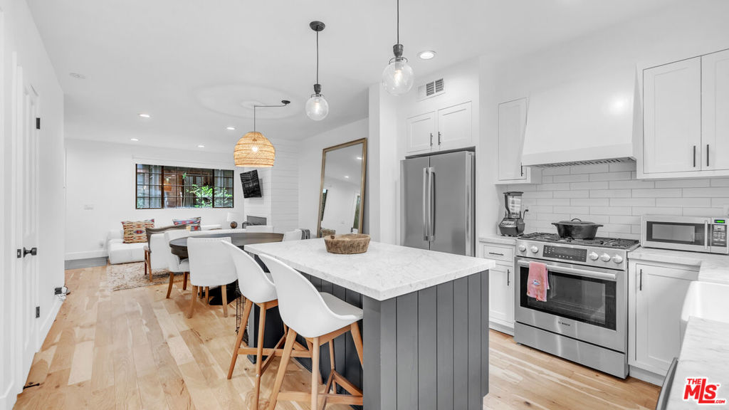 Just off Ocean Avenue, this Santa Monica townhome puts you a half block from Palisades Park and the bluffs. Spanning three levels with its own interior elevator and roughly 1,577 square feet, the layout is both functional and inviting. The remodeled kitchen opens to a private patio ideal for coffee in the morning or dinner outdoors. The living room gets great natural light and centers on a wood burning fireplace. Upstairs you'll find a bright guest bedroom with full bath, laundry, and a den or office. The top floor is dedicated to the primary suite with vaulted ceilings, a walk in closet, private terrace, and a bath with double vanity, soaking tub, and glass shower. Oak floors, central air, and two side by side parking spaces with storage add to the comfort. San Vicente Ocean Townhomes is a small gated community built in 1982, tucked into a quiet setting with open space to the east, yet steps to Montana and the beach. Clean, easy, and ready. The seller is motivated and all reasonable offers will be considered