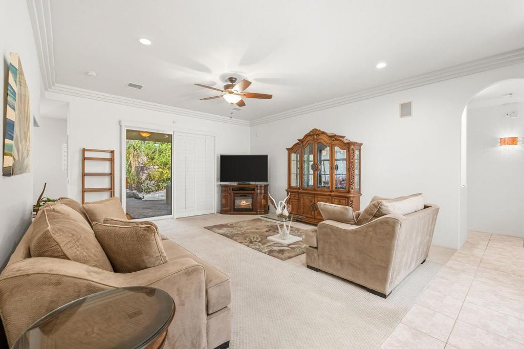 Custom home in Park Escoba/Los Compadres in South Palm Springs with no lease or HOA fees.This 4 bedroom/ 3 bath home built in 1998 with 2721 sqft. has a center island kitchen with granite tops and maple cabinets. The kitchen overlooks the huge family room and dining areas plus a peninsular(three sided) fireplace, shared with the semi formal living area. The primary bedroom is quite large, has a very nice ensuite bath with huge soaking tub, dual vanities and both a walk in and hallway closet. There is also a pool bath on this side of the home with shower. The other side of the home has two additional spacious bedrooms and a very nice custom tiled bath. Many stained glass windows as well as custom glass doors throughout the home.The outside has a very lush landscaping theme with many varieties including many citrus and palms. The pool and spa have rock features and a cascading rock spa into the pool. The home also features a full two car garage as well as a garage for a smaller car/golf cart.This is a very private, end of road neighborhood with many well taken care of custom homes.