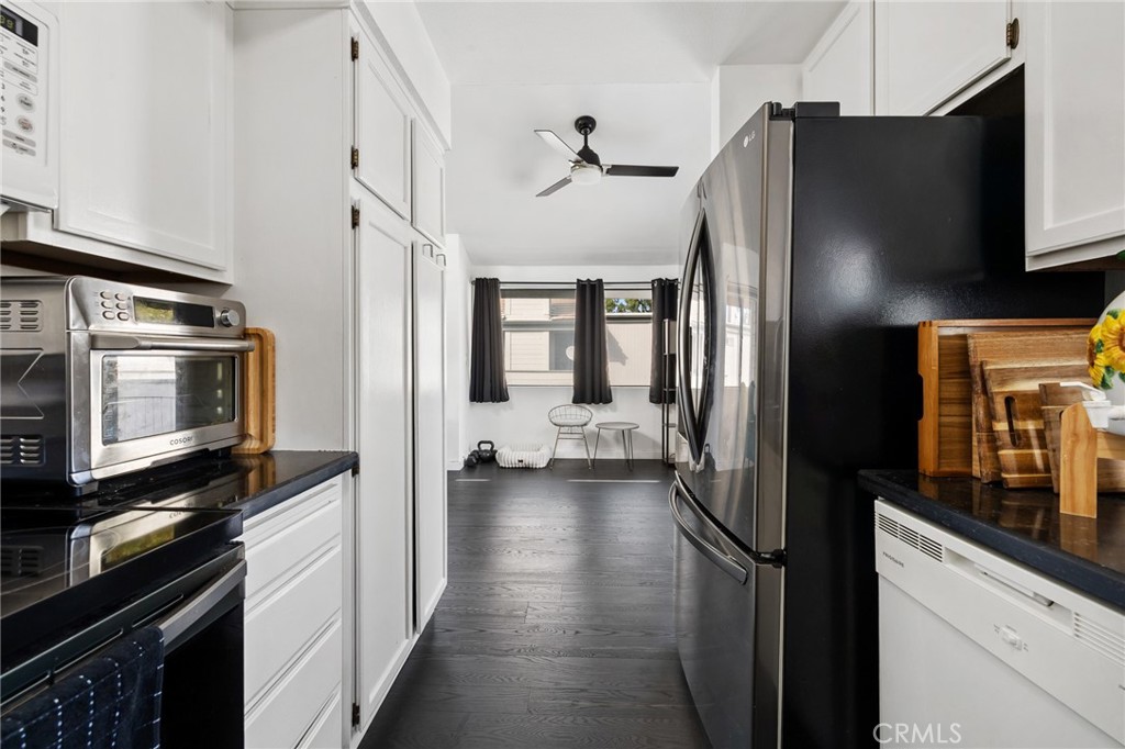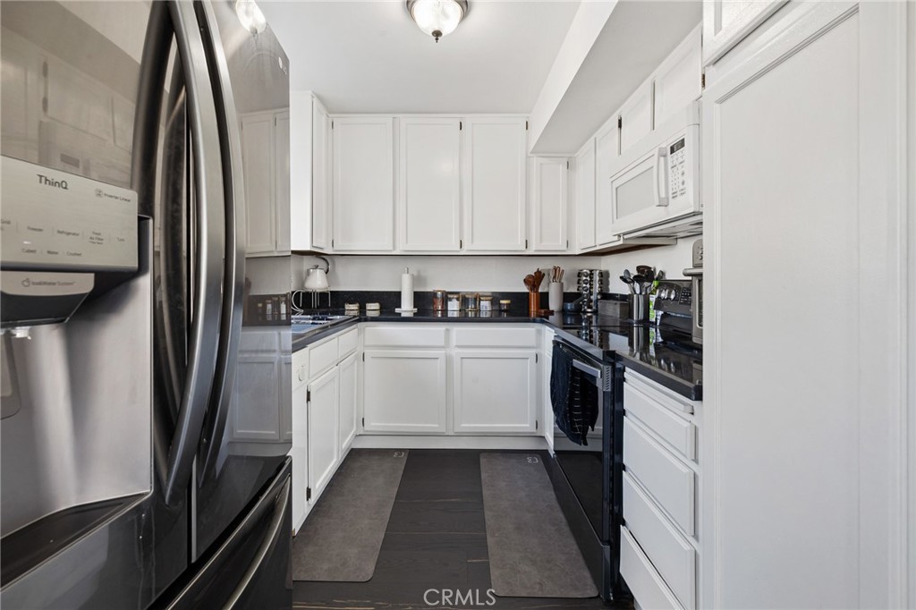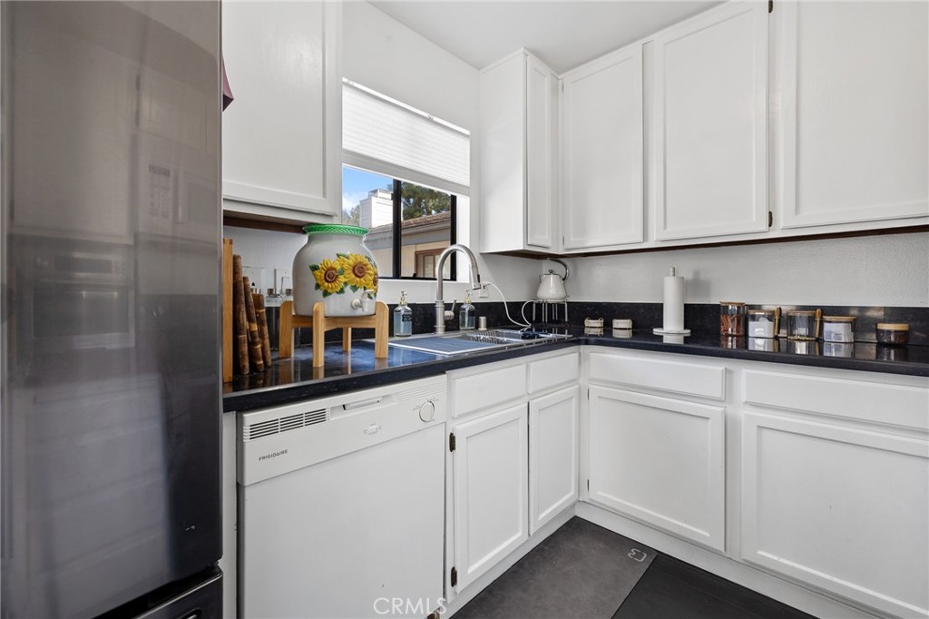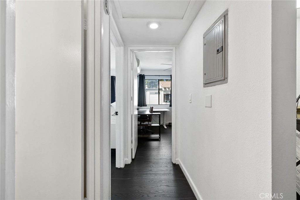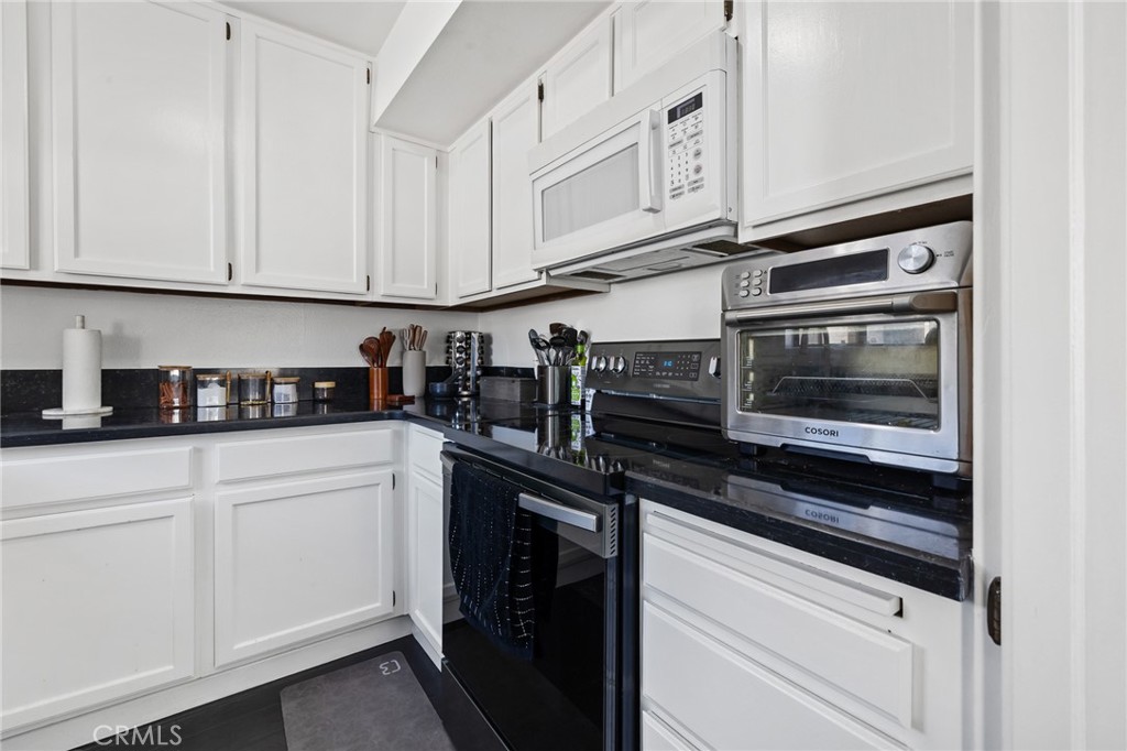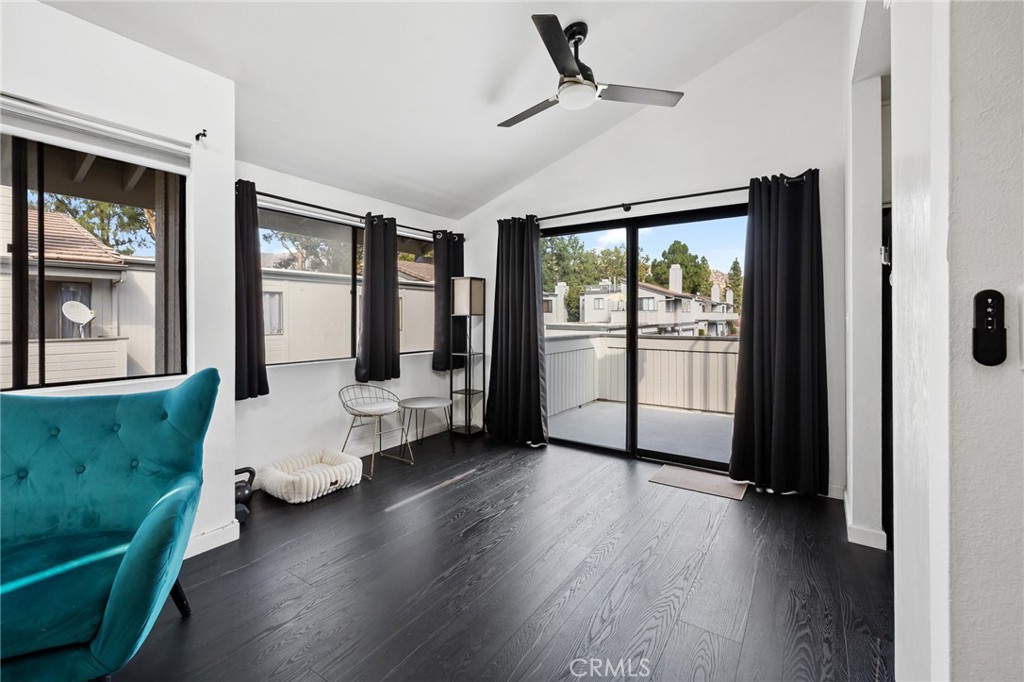 FULL CORNER UNIT PRIVACY. Private two car garage with extra storage and an EV charger. Upgraded electrical panel with whole-home surge protection and capacity for solar, backup battery, or generator. Vaulted ceilings, and premium waterproof laminate flooring throughout. The spacious living room features high ceilings, abundant natural light, a cozy fireplace, and an open layout that flows seamlessly into the dining area and oversized balcony with peek-a-boo mountain views. Updated kitchen with quartz countertops, shaker cabinets, and farmhouse sink. Large primary bedroom with ensuite walk-in shower; generously sized second bedroom. IN UNIT LAUNDRY. The home is also fully wired for Ethernet with network ports installed, ready for high-speed internet and reliable wired connections. Modern ductless mini split AC/HEATING system in each room, allowing for a more energy efficient way of heating and cooling with cleaner air versus an HVAC unit with ductwork. The previous owner replaced the ductwork for split systems, allowing each room to be at the optimal temperature of your choice. HOA covers WATER, trash, sewer, exterior maintenance landscaping, as well as, the community amenities included: two resort-style pools, spas, a tennis court, and landscaped park-like grounds. Lots of guest parking. Convenient to 118 freeway, schools, shopping, dining, and parks. Freshly painted, ready for move in.