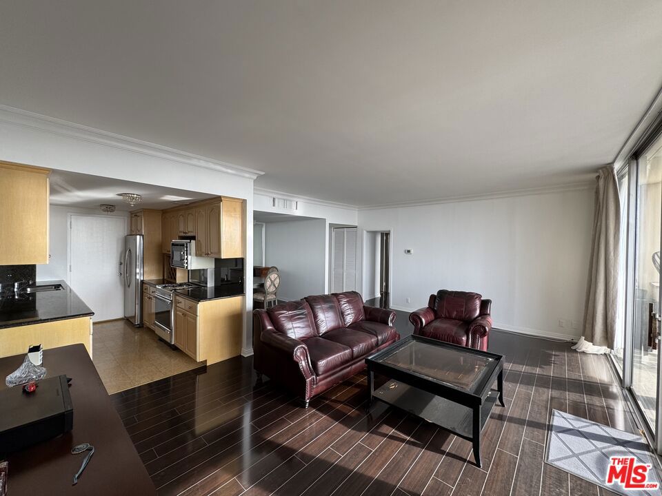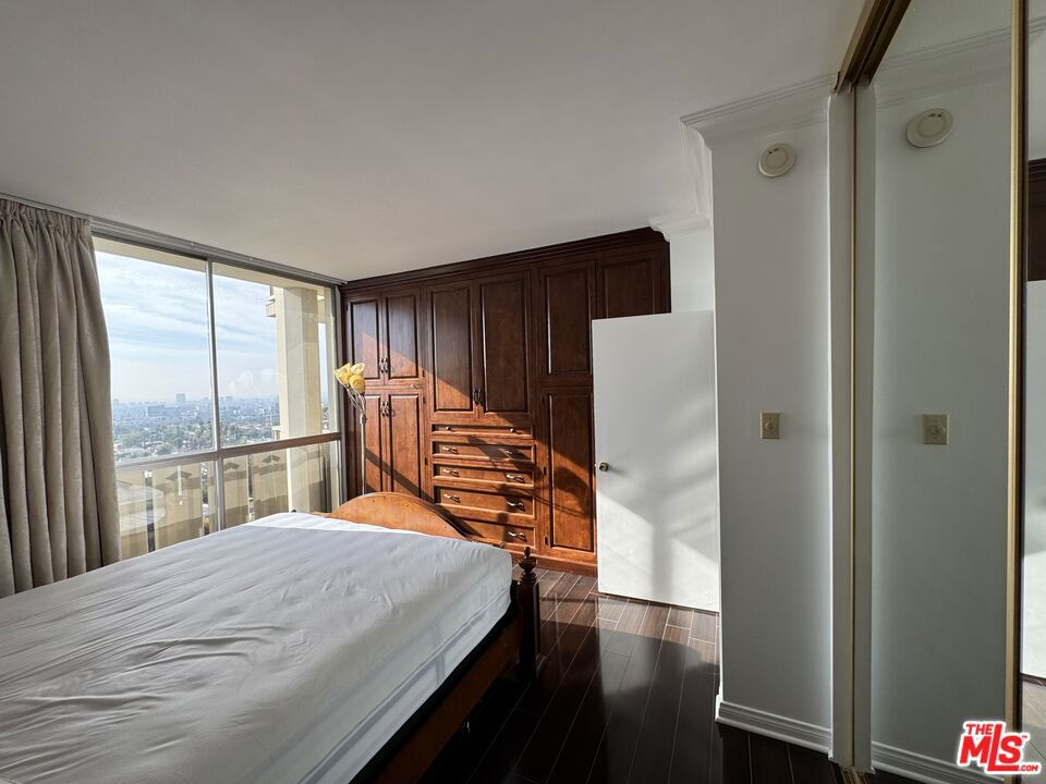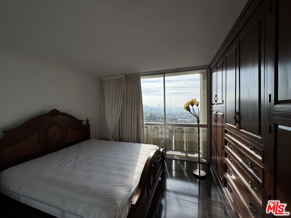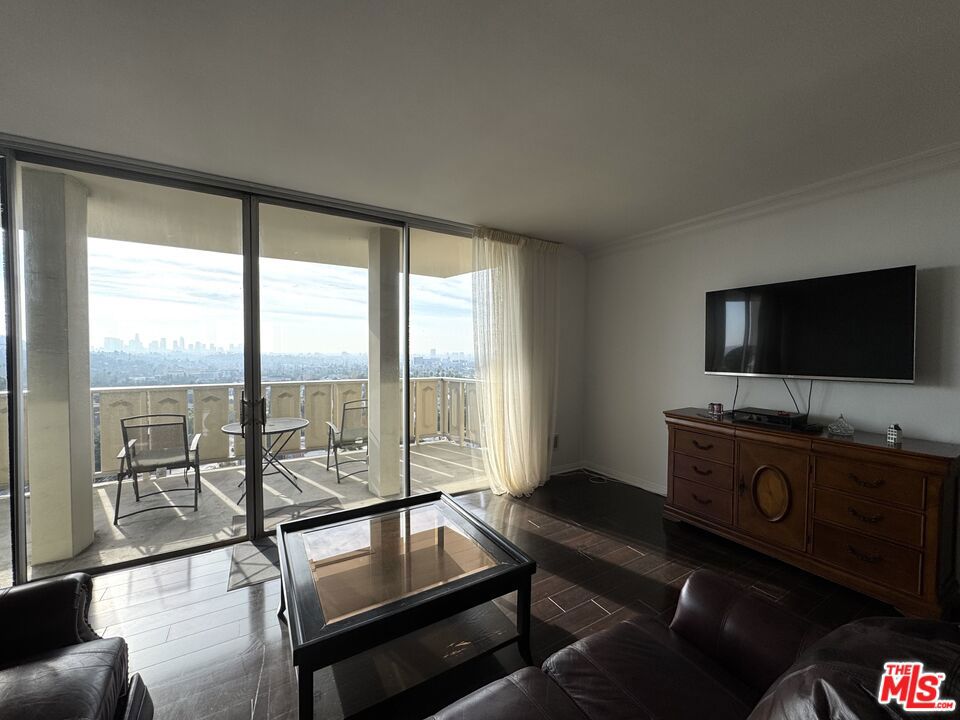 Stunning views from this impressive top floor unit in Los Feliz Towers. A freshly painted one bedroom + one bathroom condominium in the ever popular high-rise. This unit boasts hardwood floors, a dedicated office/den area and an expansive deck to watch the sunrises and sunsets. This luxury condo is in a full service building with a doorman, security, pool, gym and sauna.
