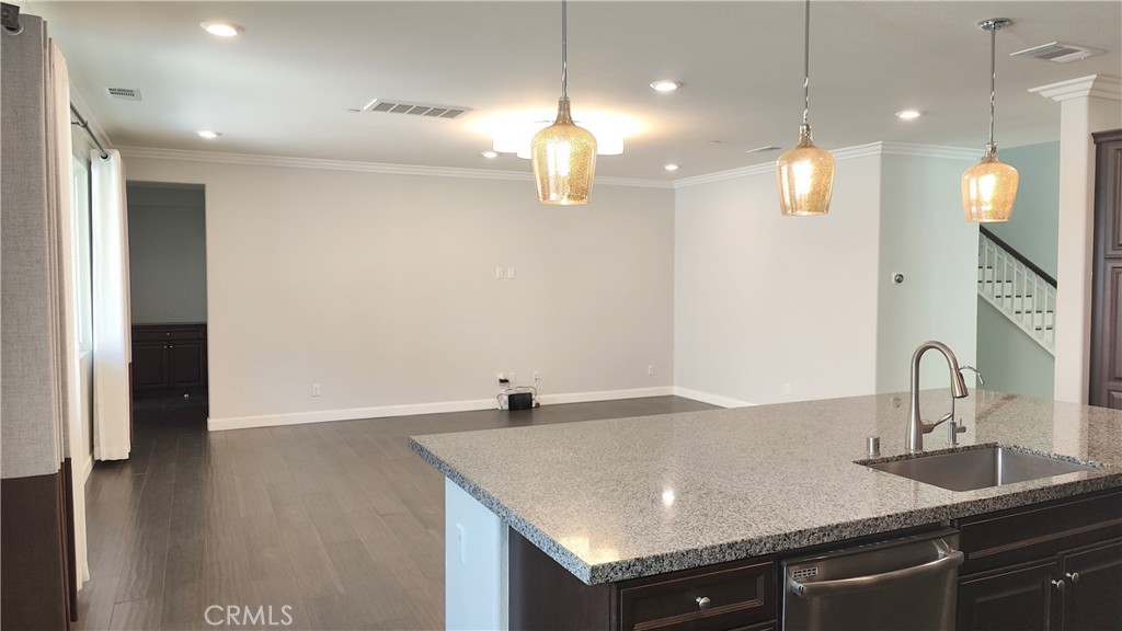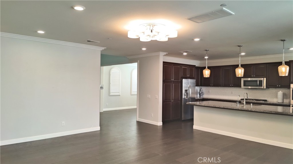 Extremely well maintained and highly upgraded 5 bed 3.5 Bathroom homes in a fairly new and well maintained community walking distance to a small community park and a larger community park. As you enter the house with high ceiling is a den or office and a formal and then there is an open kitchen with upgraded black splash and is practically brand new because owner don't cook or use the appliances at all because they use the small kitchen that they made from the tandem 3rd garage. Formal dinning room is open to the kitchen and access to backyard. Large square family room with beautiful lights. Downstairs have a bedroom with its own full bathroom. Downstairs flooring is primarily upgraded italian tile that resembles wood. There is 3 car attached garage with tankless water heater and water softener. Upstairs is a large master bedroom with a large master bathroom and walk in closet. Upstairs also have a den/living room/office and 3 bedrooms sharing a full bathroom and good size laundry room. All bedrooms have high quality laminate wood flooring. Backyard is good size with california room and trellis for planting. 2 central AC/Heating unit to control upstairs and downstairs separately with Nest thermostat. Home has leased solar to help out with electricity cost. House is facing North and South so its is extremely good in weather, where summer time the house is naturally cooler and winter time is naturally warmer. House is not near electricity tower and in a quiet street location. Beautiful crystal hanging on the high ceiling on the stairs is included with sale. House has led and upgraded lightings throughout and ready for move in!