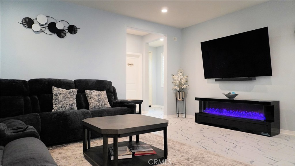 Welcome to Olive Walk in La Mirada, an intimate community of just 33 homes where modern living meets small-neighborhood charm. Built in 2018, this spacious 2,170 sq. ft. residence is one of the largest floorplans in the neighborhood, offering 4 bedrooms and 3 full bathrooms. From the moment you step inside, you’ll be captivated by the soaring ceilings, recessed lighting, and an open-concept design that seamlessly unites the living room, dining area, and kitchen. The generous living room provides plenty of space for multiple seating arrangements and has ample wall space to accommodate even the largest entertainment setup. At the heart of the home is the inviting kitchen, designed for both style and function. A large island anchors the space, complemented by sleek white cabinetry, matching quartz countertops, and stainless-steel appliances. Subtle tile accents and backsplash details add warmth and character, while abundant storage and counter space make it a dream for any home chef. Just beyond, the oversized patio offers the perfect backdrop for outdoor dining, gatherings, or simply relaxing under the La Mirada sky. The first floor also features a comfortable guest bedroom and a full bath—ideal for visitors or multigenerational living. Upstairs, a bright and versatile loft with recessed lighting and multiple windows awaits. Whether used as a media room, play area, or home office, the possibilities are endless. The primary suite is a true retreat, boasting room for a king-size bed, a spa-inspired bathroom with dual vanities, separate tub and shower, and a massive walk-in closet. Two additional bedrooms and a full bathroom complete the second floor. Additional highlights include energy-efficient triple-pane windows with plantation shutters, an attached two-car garage with a pristine epoxy floor, and a full driveway for extra parking. With no two-story home directly behind, you’ll also enjoy enhanced privacy. Olive Walk’s location in La Mirada is hard to beat—just minutes from Biola University, local shopping, La Mirada Theatre for the Performing Arts, Splash Aquatic Center, and multiple golf courses. With convenient access to I-5 and CA-90, commuting is simple while still enjoying the comfort of a close-knit community.