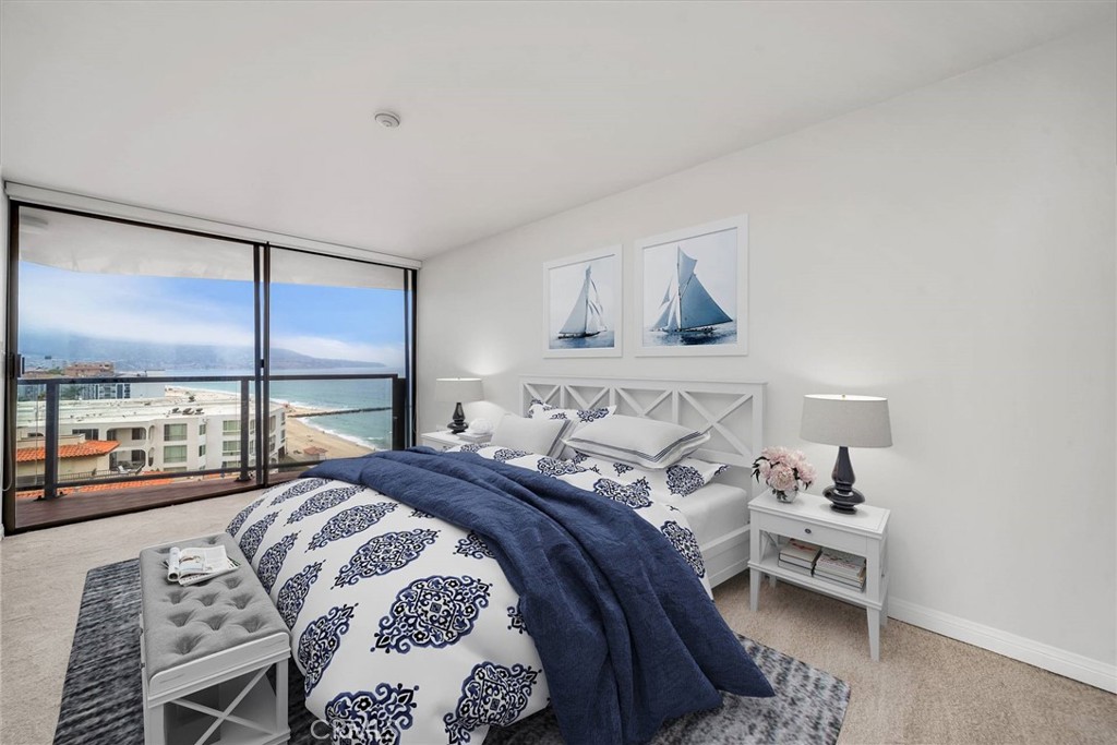 Enjoy panoramic ocean views, golden sunsets, and refreshing coastal breezes from this beautifully appointed southwest-facing condo in Ocean Plaza. This spacious 2-bedroom, 2.5-bath residence combines style and comfort with an open living and dining area, cherry plank wood flooring and a galley kitchen featuring quartz counters, abundant cabinetry, stainless steel appliances, and a wine fridge. Upstairs, both bedrooms boast breathtaking ocean views . Step unto your balconies to enjoy the breezes & vibrant colors of the sky. The primary suite includes a large walk-in closet and updated ensuite bath, while the secondary bedroom offers its own modernized bathroom and balcony. Outdoor living is a highlight with a generous front patio for entertaining or dining al fresco. Relax and take in the sunsets. A tandem garage provides convenient parking and storage. Ocean Plaza’s resort-style amenities include a sparkling pool, spa, ocean-view sun deck, gym, and clubhouse. From the garage, step directly onto the beach and bike path—just moments to the Redondo Pier, Veterans Park, and the sandy shoreline. Hermosa, Manhattan Beach, and Riviera Village with shops, cafés, and fine dining are all nearby. This home offers the ultimate blend of coastal lifestyle and everyday convenience—Your front-row seat to the South Bay’s coastal lifestyle.