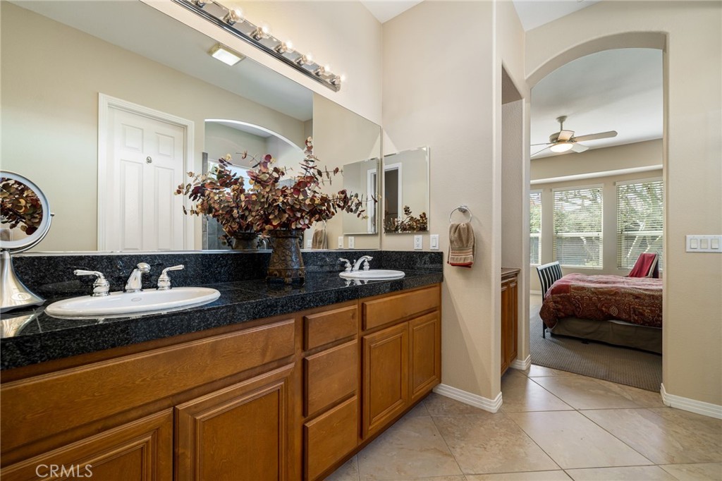 From the warm winter sun to desert sunsets and starry nights, come enjoy resort-style living in Trilogy at La Quinta! This beautiful Monarch floorplan is spacious and flexible, beginning with 1,845' of living space, 10-foot high ceilings and a light & bright interior. An expansive great room opens to the chef's kitchen, complete with bar seating, island seating, granite countertops, an abundance of cabinetry and both a kitchen nook and dining room. The primary suite is a true retreat with a bay window overlooking the backyard while a French door offers direct outdoor access. The attached primary bath sparkles with a spa-like oversized shower, dual sinks and granite countertops. Along with a spacious secondary bedroom and full bath, a den customized with a hallway French door can easily be used as a guest room or third bedroom if desired. Other custom builder upgrades are found throughout the home, including an oversized entry door and baseboards, pull-out shelving in the kitchen and more. One featured upgrade is the patio extension off of the kitchen nook and great room, with an extended roofline done at the time of construction. The interior furnishings and artwork were curated with care over the years and make this home truly move-in ready. Professional landscaping reflects the owners' love of the desert and surrounding mountains; the Palo Verde trees are spectacular! If you have a different dream yard in mind - perhaps one including a pool - the oversized 9,148' lot provides plenty of room for inspiration. This home reflects pride of ownership of the original owners, who purchased when Trilogy first broke ground. participating in the builder's lottery for this model and premium lot. Trilogy at La Quinta is a 55+ guard-gated community offering almost endless social and recreational opportunities. Prefer peace and quiet? Relax and soak up the sun and nature views. Want to be pampered? The day spa offers massages, facials and more. Perhaps you'd like to swim laps, partake in pickleball, golf or tennis? It's all here, along with a billiards room, gym, indoor running track, clubhouse, cafe and so much more. Or enjoy shopping and dining in Old Town La Quinta. Other area highlights include the world-renowned La Quinta Art Celebration, Sunday polo matches, and even Coachella at the nearby Empire Polo club. Steeped in history and recognized for luxury and outdoor recreation, enjoy life here in the Gem of the Desert!