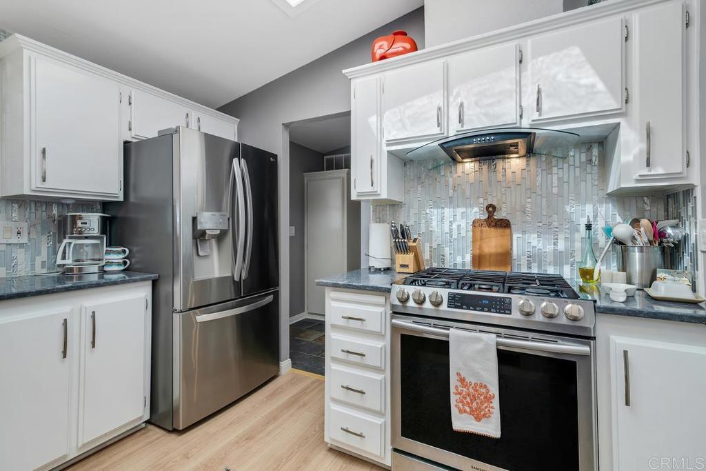 Stunning 2-Bedroom Home with Vaulted Ceilings, Skylights, Modern Upgrades & Exceptional Outdoor Features This beautifully renovated 1,351 sq ft home perfectly blends modern design, comfort, and functionality. Featuring 2 spacious bedrooms, each with walk-in closets for ample storage, and 2 bathrooms, this home provides everything you need for easy, stylish living. The main bedroom is cozy with plush carpet, while the rest of the home boasts sleek luxury vinyl plank flooring. The back entry features a chic slate landing, which also extends into one of the bathrooms for a touch of elegance. The heart of the home is the open-concept kitchen, bathed in natural light from 2 skylights that brighten the space. With Silestone countertops, a brand-new oven, and modern light fixtures, this kitchen is both beautiful and functional. The vaulted ceilings throughout the living and dining areas create a sense of openness, while the freshly painted interior enhances the home’s inviting atmosphere. Step outside to your WeatherTech outdoor deck, perfect for relaxing or entertaining. A power lift from the driveway to the back door ensures easy access, and a spacious detached storage shed with built-in shelving offers extra room for storage needs. Located in a desirable neighborhood, this home offers a combination of modern upgrades, thoughtful design, and exceptional outdoor features. It’s move-in ready and waiting for you—schedule your tour today!