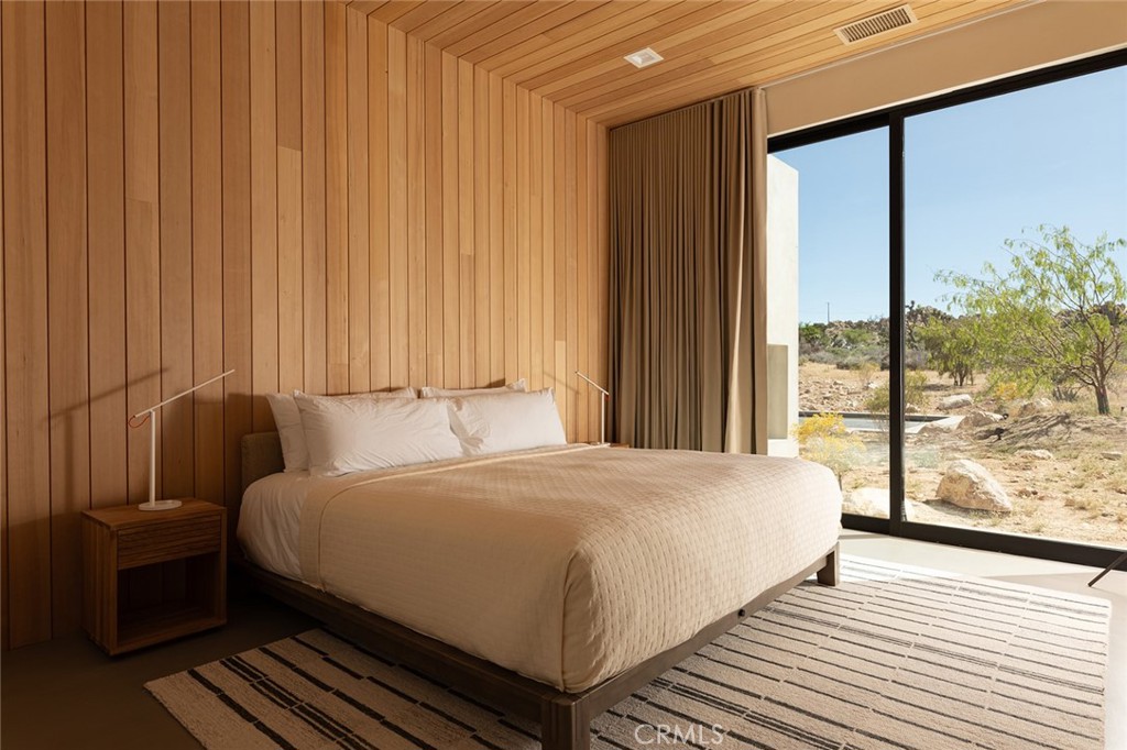 Architecturally significant and quietly dramatic, 5047 Brisbane Ave embodies modern desert luxury living. Set on 2.29 acres in a discreet Yucca Valley enclave with minimal traffic and wide-open sky, the property offers rare tranquility without sacrificing proximity to town, hiking trailheads, and local amenities. Completed in 2023, the 3-bedroom, 2-bath residence spans 2,014 sq ft of thoughtfully designed interior living space. Expansive glazing frames cinematic views of Joshua trees, boulders, and distant mountain ranges. Through careful siting and curated landscaping, the pool and bedroom wing feel quietly protected - a rare architectural balance of privacy and neighborhood ease. Inside, refined materials and quiet luxury define the home. A chef’s kitchen with Miele appliances and Dekton surfaces flows into open living spaces accented by Delta Millworks ceilings, custom doors, and a sleek Ortal fireplace. Spa-like baths feature concrete vanities, curated fixtures, and a freestanding tub ideal for seasonal stays and slow mornings. Dual HVAC zones and high-performance systems ensure year-round comfort. Outdoor living is immersive and intentional: a sparkling pool and spa oriented toward panoramic desert terrain, covered alfresco dining with FireMagic grilling, and layered desert landscaping that elevates sunset lounging, stargazing, and weekend entertaining under the High Desert sky. Offered fully furnished and turnkey, the property appeals to buyers seeking a full-time residence, luxury second home, or flexible holding with optional income potential. Currently operating as an active luxury short-term rental, it demonstrates demand within the modern architecture segment for those considering 1031 exchanges or passive models (buyer to verify). The home offers curated privacy rather than remote seclusion, a combination many desert buyers now actively seek. A rare opportunity to own a modern desert home where architecture, landscape, and livability converge in one of Yucca Valley’s most desirable pockets.