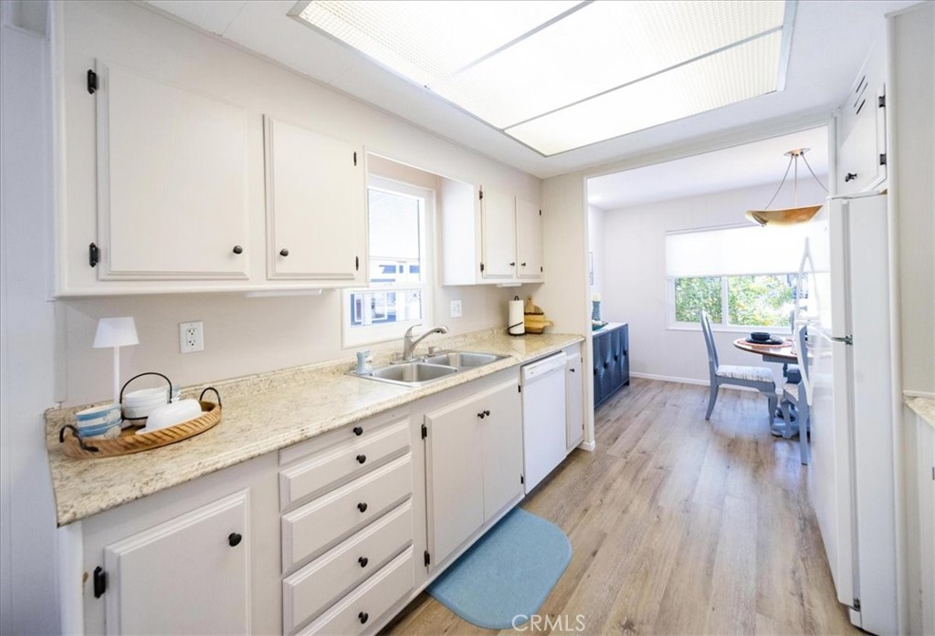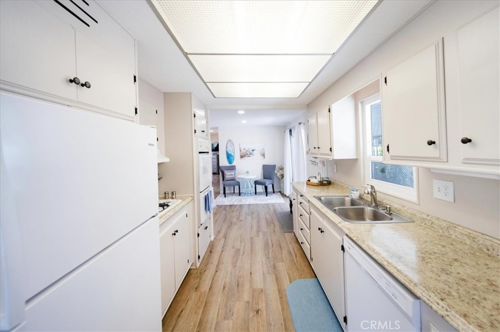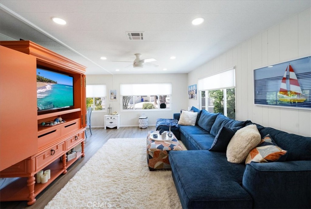 Welcome to your new, exquisitely decorated, Turnkey home, where you own the land! It was completely remodeled just a few years ago. As you enter you'll notice an abundance of natural sunlight throughout providing for a warm and relaxing environment. It boasts Laminate Wood-like Flooring, Recessed Lighting, Ceiling Fans, and Dual Pane Windows throughout. It has fairly new Fresh Paint, inside and out. The Master Bedroom is very spacious, while the second Bedroom provides a Murphy Bed for extra space when needed. Both Bathrooms were also remodeled with new Vanities. The Master Bathroom Shower showcases marble tile on the walls with a Mosaic pattern tile on the floor. The galley Kitchen offers a gas cooktop, double-ovens, and under cabinet lighting, just near the breakfast nook area. The Laundry Room provides ample space with plenty of storage. Additionally, your new home includes Free Golf for 2 residents, Pools, Hot Tubs, Tennis, Pickle Ball, and a Club House all included in the HOA. And finally, your new home comes completely furnished as is. Schedule your private tour today! $5,000 Buyer Credit for Closing Costs