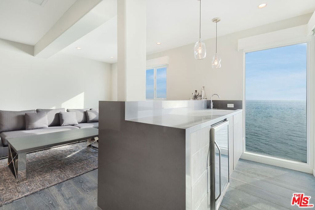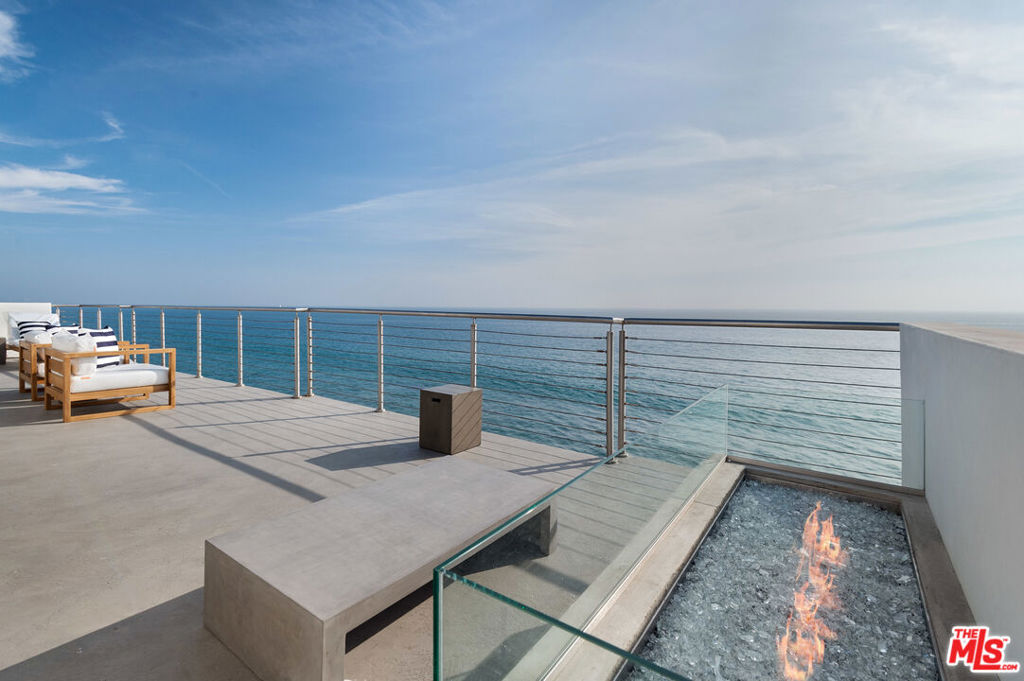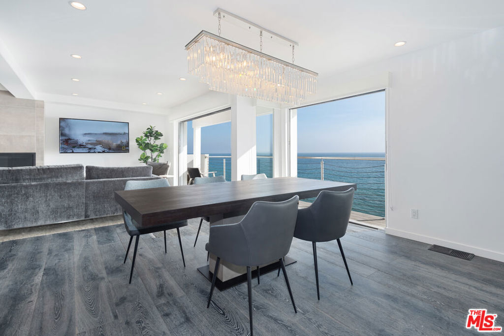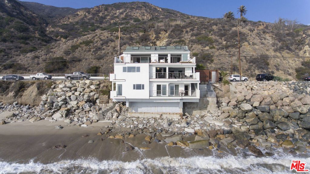 Nestled on the coveted east end of Malibu, this exquisitely remodeled beach house that comes fully furnished and fully stocked is a rare gem, offering a truly unparalleled living experience. Set against the backdrop of a serene, private sandy cove, this extraordinary property is the only residence in the area with no neighbors, ensuring total privacy and tranquility. The entry floor welcomes you into a sophisticated living space, showcasing impeccable finishes and a cozy fireplace. Expansive pocket sliding doors seamlessly blend the interior with the oceanfront patio, perfect for enjoying the stunning views. The adjacent dining room, with its captivating water vistas, leads to a chef's dream kitchen, adorned with high-end finishes and a striking floor-to-ceiling glass wine display.Upstairs, the master suite exudes luxury, complete with a beautifully designed bathroom featuring a freestanding tub and an expansive private deck with a built-in outdoor fireplace. A true sanctuary, this retreat offers a sense of serenity and unparalleled ocean views. The top floor also includes an additional bedroom, thoughtfully positioned to maximize the breathtaking views, and its own access to the vast deck.The lower level presents endless possibilities: a spacious second living room with a wet bar, a third bedroom directly on the water, and its own private oceanfront deck. This floor also offers the flexibility to serve as a separate studio, with its own entrance and a generous outdoor patio with panoramic ocean views.This beach house is one of Malibu's most unique and extraordinary opportunitiesa rare fusion of privacy, luxury, and exceptional design, all in one exceptional location.