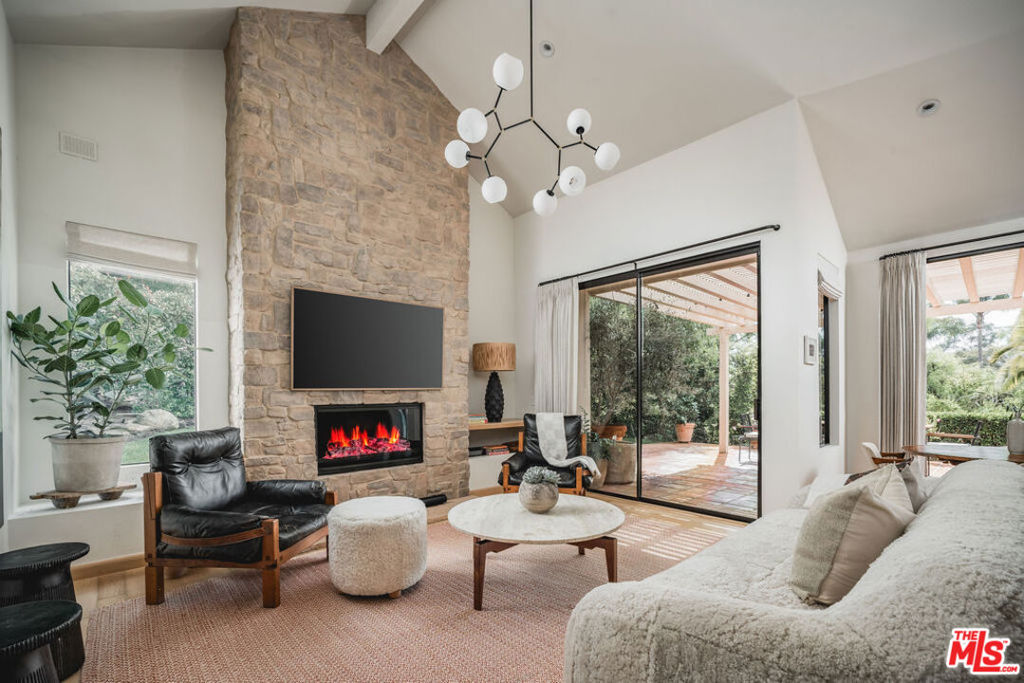 Set on a private cul-de-sac, this 3-bed/2.5-bath home with 2 offices blends timeless Spanish architecture with Jenni Kayne-inspired interiors. Spanning 2,987 sq. ft. the Montecito home highlights soaring 19-foot ceilings, sunlit interiors, and an effortless indoor-outdoor connection. Two floor-to-ceiling stone fireplaces, natural oak floors, and open living, dining, and den areas add style and function. All bedrooms open to gardens, while the sanctuary-like primary suite features high ceilings, a spa-like bath, and 2 closets. A main-level office and upstairs office loft add flexibility. Outdoors, a large patio flows to a usable grassy yard with lush landscaping. Earthy and effortlessly luxurious, it's a rare find in the Cold Spring School District