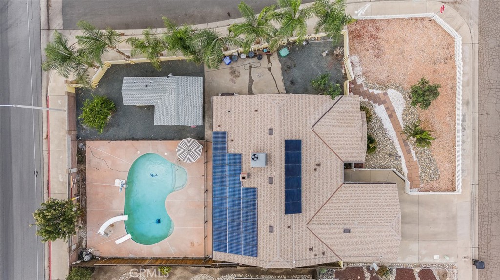 Pride of ownership shines in this beautiful home featuring a charming white picket fence and a low-maintenance yard. Offering 3 bedrooms, 2 bathrooms, this home boasts an open-floor plan with a cozy gas fireplace, new carpet in the living room and slider leading to the patio overlooking the pool. The kitchen offers plenty of cabinets and granite countertops. Indoor laundry is equipped with more storage. Large primary suite with a slider to the backyard. The ensuite feels like a private oasis, featuring dual sinks, lots of counter space, enclosed glass shower and a relaxing jetted tub, and a spacious walk-in closet. The backyard is perfect for entertaining, complete with a large, covered patio and a fenced pool with a slide and diving board. Plus, there's a bonus—a detached ADU with 1 bedroom and 1 bathroom and owned/leased solar! All situated on a large corner lot, this home is a must-see!