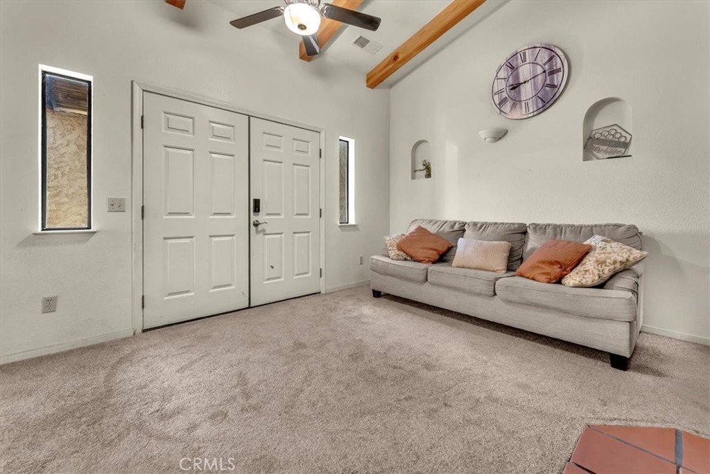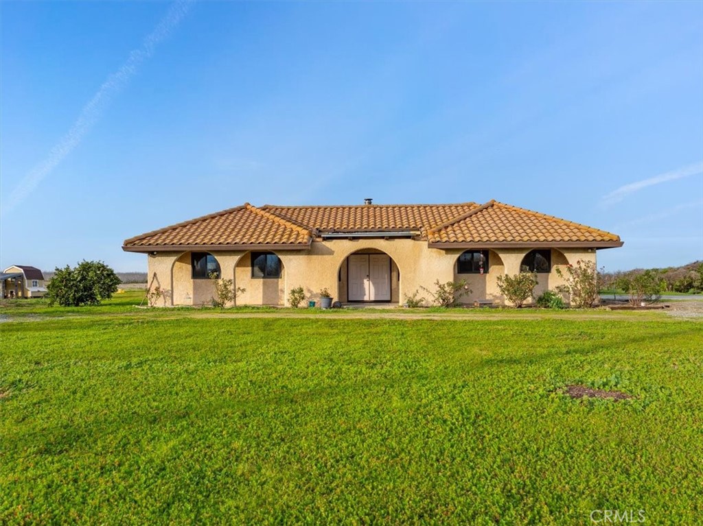 Spanish-Style Home on Almost 20 Acres! This charming Spanish-style home features classic arches, a tile roof, and a warm, inviting feel. The family room has beautiful exposed beam ceilings and a cozy wood stove—great for relaxing or gathering with friends and family. The large primary bedroom offers plenty of space and comfort. Outside, you’ll find just under 20 acres with room for animals, gardens, orchards, or whatever you can dream up. A variety of fruit trees including orange, lemon, lime, avocado, grapefruit, pear, pomegranate and persimmon already established. Owned solar and a Tesla battery add to the efficiency of this home as well as newer windows. Sale will include two 9.91 parcels. Whether you're looking for space to spread out or a peaceful place to call home, this property has a lot to offer.