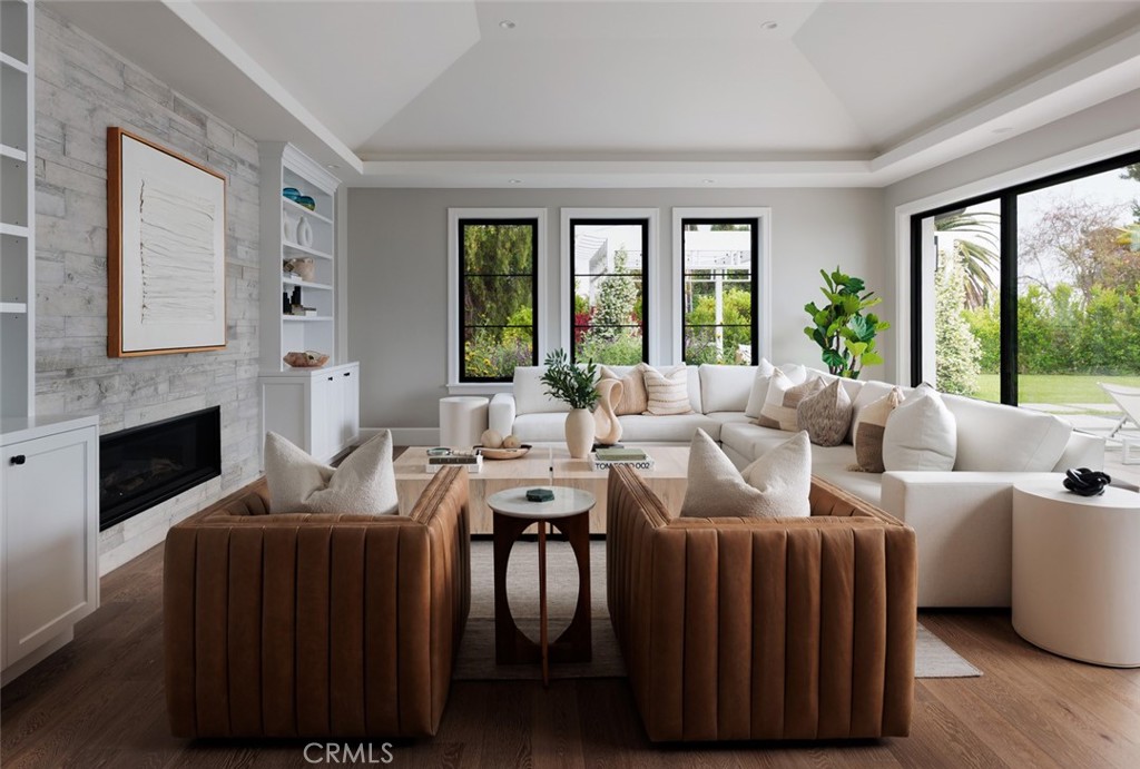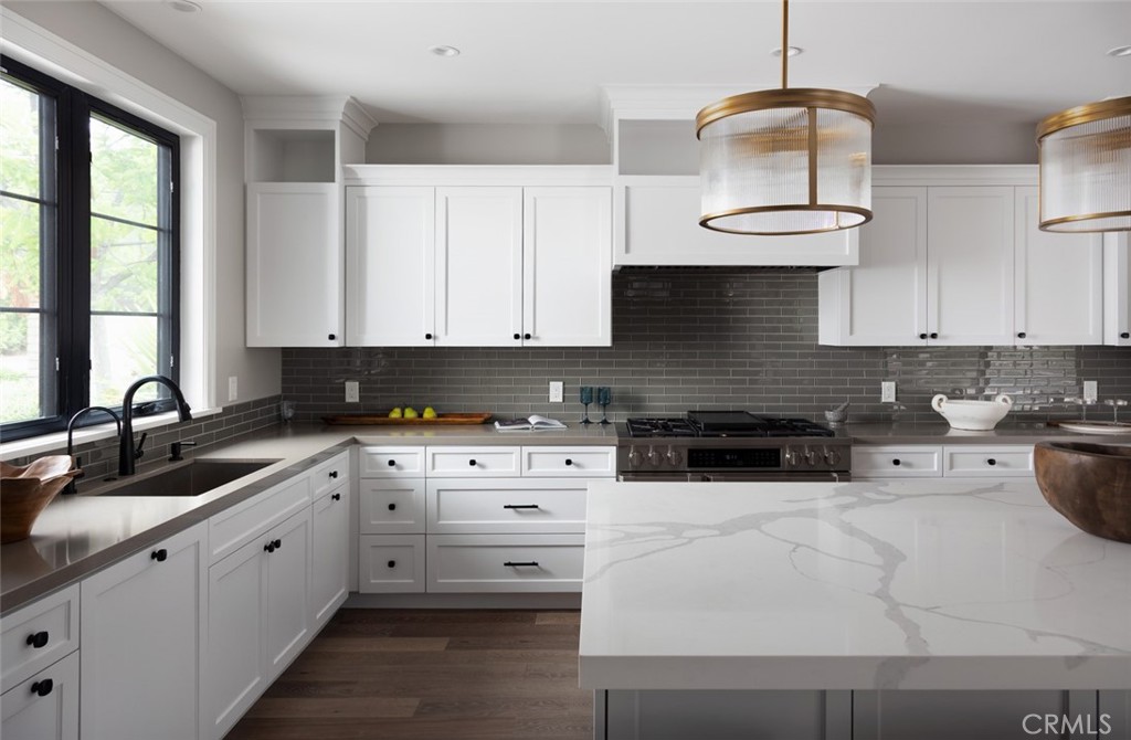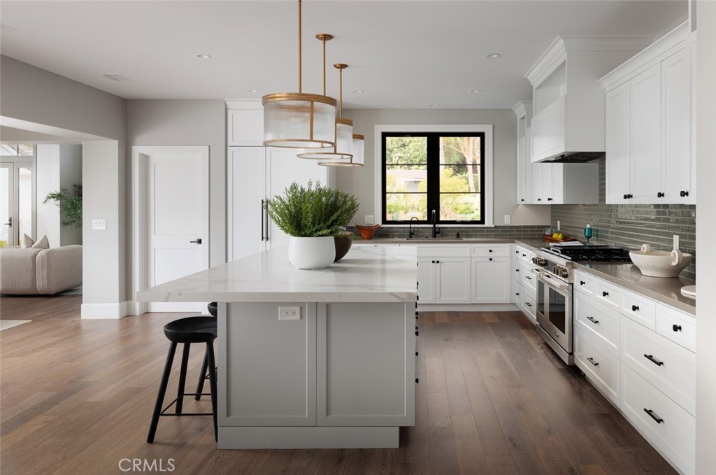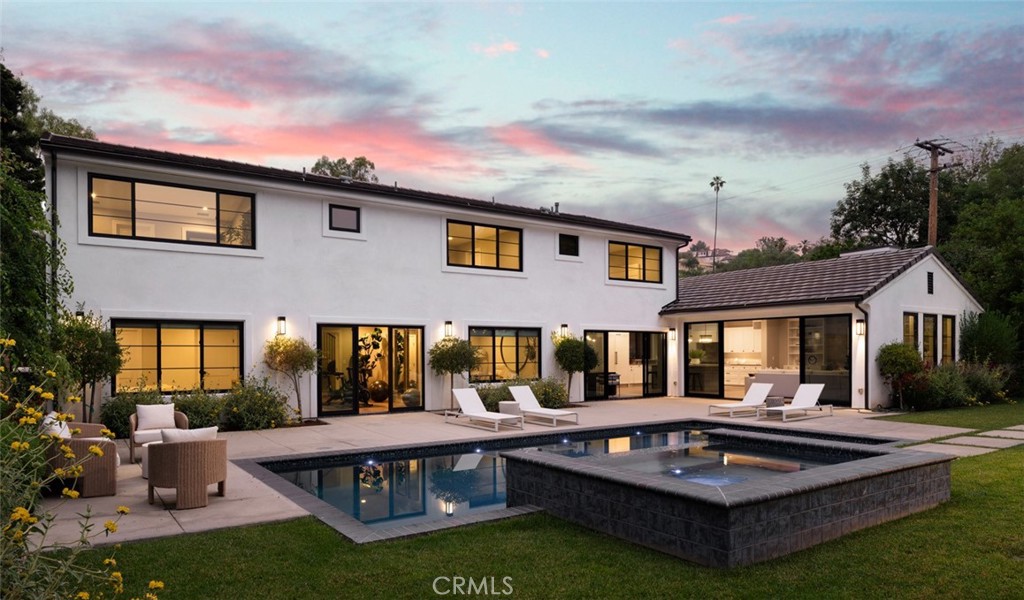 Newly rebuilt in late 2022 from the studs out and completely reimagined and expanded, this fabulous new home in Villa Park is truly unparalleled. Move-in ready, the residence offers the rare and enviable combination of newer construction in an established neighborhood, with mature landscaping and a prime corner homesite of about .46 acres adding to its undeniable appeal. Bathed in natural light that shines through an abundance of large windows, the open design showcases a foyer and living room with double-height ceilings, a contemporary staircase and a lofty interior balcony above. The grand dining room is certain to be a favorite place to share memorable occasions, and it opens to the backyard, creating a seamless indoor/outdoor vibe. Equally open and stylish, the on-trend kitchen displays white Shaker cabinetry, a large island with bar seating, quartz countertops, subway tile backsplash, a stainless steel pro-caliber range, and a built-in cabinet-matched refrigerator. The kitchen flows effortlessly to a family room that is distinguished by a high ceiling, backyard access, and a stone fireplace flanked by custom built-in shelving and cabinetry. Sophisticated and modern, the home’s aesthetic is embellished with warm white and gray hues, wood-plank flooring and chic LED lighting. Five bedrooms plus office/gym and four and a half baths are featured in approximately 4,005 square feet, including ensuite bedrooms, a main-level bedroom, an office, and an upscale-modern primary suite with a vaulted ceiling, freestanding tub, separate shower and two sinks. Grounds are impeccable, with low-water plantings, a tranquil pathway, and an attached three-car garage with a large paver-finished driveway in the front yard. The rear yard reveals a brand-new pool and spa, a large patio, verdant lawn, a lower level with fragrant orange trees, and a beautiful pavilion with a built-in BBQ bar. Excellent schools serving K-12 are nearby, and parks, shopping centers, trails, and restaurants are close to home.
