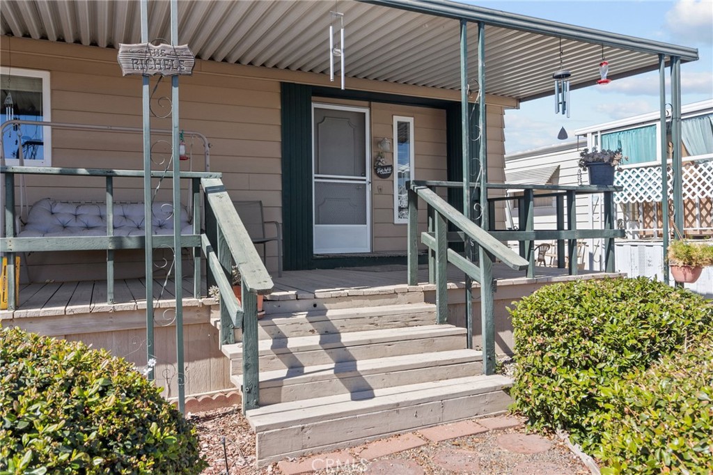 Nestled in the gated 55+ community of Sierra Portal Estates, this well-maintained and spacious 2-bedroom, 2-bath home combines comfort and convenience in a serene setting. Step inside to an open-concept layout that flows seamlessly from the living area to the dining space, creating a bright and airy environment perfect for entertaining. Abundant windows fill the interior with natural light, highlighting the home’s thoughtful design.The primary suite offers a walk-in closet, shower, and soaking tub, providing a private retreat for relaxation. Additional features include an indoor laundry room, covered deck for outdoor enjoyment, and two storage sheds for added convenience. Outside, a carport and curved driveway provide easy access and additional parking, complementing the home’s stylish curb appeal. Residents enjoy access to a community pool and event center, all within a secure, well-maintained, and welcoming 55+ community. Conveniently located near Highway 140 and Highway 99, with parks, shopping, and dining just minutes away. Listed at $59,900, this home presents a rare opportunity to enjoy an elegant, low-maintenance lifestyle in one of Merced’s most sought-after communities.