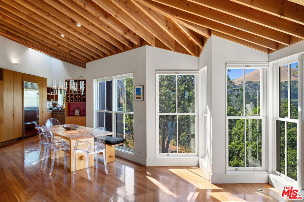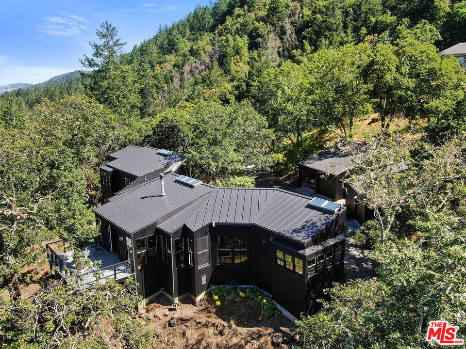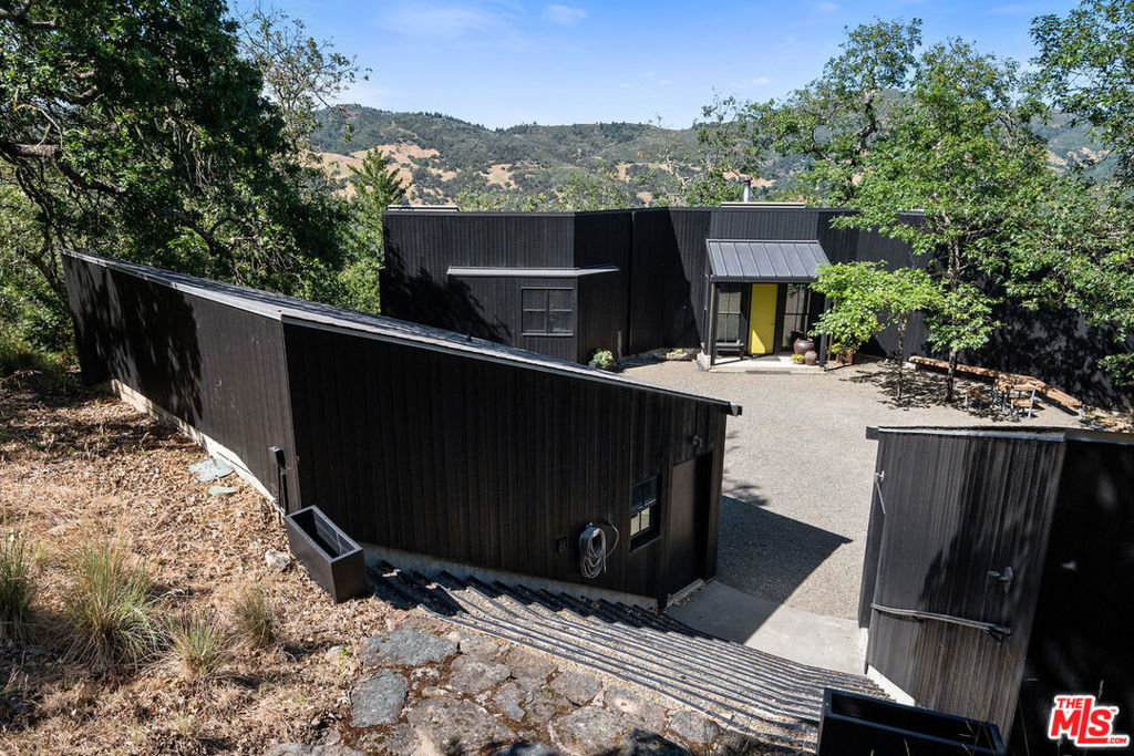 Welcome to unparalleled sanctuary spread across over 47 acres of pristine land. Designed by renowned architect William Turnbull, the 2,500-square-foot main house seamlessly integrates with the surrounding landscape. The gated and secure driveway leads up from the valley below to a courtyard formed by 2 separate garages and by the tall wall of the house. A masterpiece of design featuring two spacious bedrooms, open floorpan with gourmet kitchen - SubZero fridge, Dacor gas range, Miele dishwasher & wood burning fireplace. Clad in vertical 2x6 tongue and groove cedar boards, the house harmoniously curves along the contours of the hillside, creating a captivating visual harmony. Step into the thoughtfully designed interiors featuring exquisite details and premium materials. A striking window wall bathes the main living area in natural light, while exposed Douglas fir decking, vertical grain Douglas fir plywood cabinets, and cherry floors imbue the space with warmth and sophistication. The master bedroom offers a serene escape with a cedar soaking tub, or ofuro, nestled in a window-clad alcove, providing a tranquil oasis just steps from the bed. Enjoy outdoor living at its finest, where majestic oak trees provide a timeless welcome. A detached 1bdr 1ba guest house with full kitchen and a basement, designed by SF modernists Marquis & Stoller and recently remodeled, offers additional accommodation and is complemented by a private large deck with breathtaking panoramic views. An outdoor pool and a pool house designed by architect Dan Solomon. There is more: Embrace the essence of wine country living with 1 acre of premium Cabernet Sauvignon producing grapes - immediate income (3 vineyard blocks), planted in high-altitude vineyard in the esteemed Mt. Veeder AVA. Additionally, explore the private hiking trail leading to the summit of the mountains, offering panoramic views of Sonoma and Napa valleys. Recent enhancements and modern upgrades: a metal roof - main house, security gate system, ring, nest, panoramic windows, remodeled guest house - freshly painted, new sliding doors. Enhanced Outdoor Spaces: newly constructed observation area adjacent to the guest house, providing a unique vantage point to enjoy the breathtaking landscape. You can dine under under the stars or build an additional structure to enjoy the views. Impeccable Maintenance: All structures have been freshly painted, reflecting meticulous attention to detail and ensuring lasting appeal. Additional Potential: A previous owner left plans to add an 800-square-foot extension to the guest house, offering further opportunities for customization and enhancement. Mt. Veeder is considered also suitable to grow black truffles since climate and underground water resources might be ideal for cultivation conditions. Well is 260 feet deep, it's on top of a hill, gravity fed to the houses. Well pumps water to 10,00 gallon concrete, water tank, free flowing. This is the epitome of luxury living in Napa, offering a harmonious blend of natural beauty, architectural excellence, and modern amenities amidst the tranquil splendor of the Mayacamas Mountains. Gated and fenced with owned pool solar and two Tesla batteries, CellGate Watchman W480, Ring, & Nest. Located minutes to world class wineries and restaurants. A scenic 20 mins drive places you in the heart of Yountville or Glen Ellen in Sonoma. This exquisite property boasts a unique blend of natural splendor, architectural distinction, and modern amenities, making it an ideal haven for discerning buyers who value privacy, a great reputation and serenity.