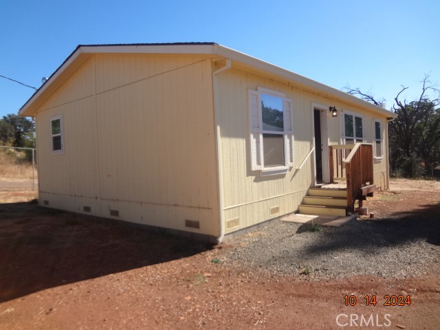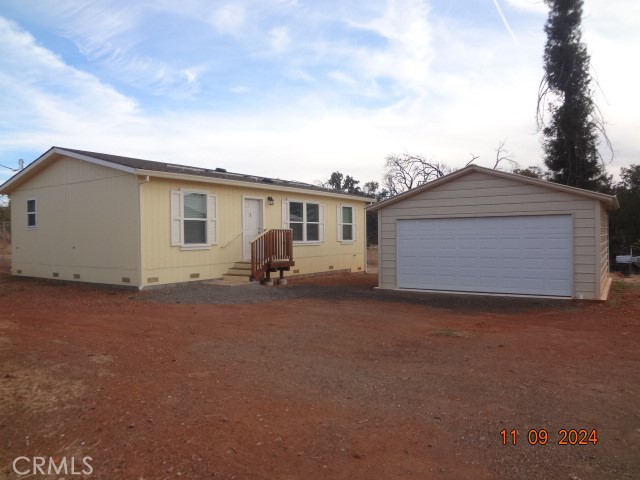 Here's your chance to live on the water. Records show this Cache Creek front manufactured home as a 24 ft x 40 ft with 3 bedrooms 2 baths and detached double garage. Home was installed in 2023. Living Room is open to the kitchen/dining area; kitchen has stainless electric stove, microwave hood, dishwasher and adjoining separate laundry room with exterior door to the side. Living room and bedrooms are carpeted; main bedroom has walk in closet. Main bath has tub/shower combination. Hall bath also has tub/shower combination. Nice sized double detached garage; lot is fenced.