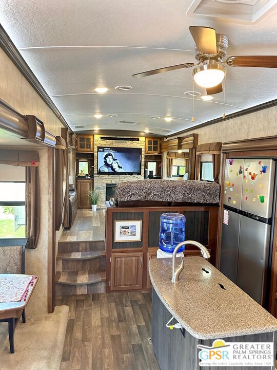 Well-Appointed 5th Wheeler for Rent in Desirable Desert Shadows 55+ Community. Enjoy resort-style living in this beautifully maintained 2015 Fifth Wheeler located in the sought-after Desert Shadows RV Resort one of the few areas where you can live year-round. The site sits on a large, landscaped, and hardscaped lot offering both privacy and space, complete with elegant pavers, a new RV pad, and a large storage shed. Just steps from the clubhouse, this rental provides easy access to the community's impressive amenities, including six pools, two large clubhouses, tennis and pickleball courts, fitness center, library, card and craft rooms, and more. Rent includes premium TV, high-speed internet, water, trash, and recycling. Desert Shadows RV Resort is a vibrant, gated 55+ community known for its friendly atmosphere, safety, and social activities. Enjoy the comfort of your own well-equipped fifth wheeler and the benefits of a full-service resort the perfect balance of relaxation and connection. Experience the best of desert living in this exceptional rental tiny home.