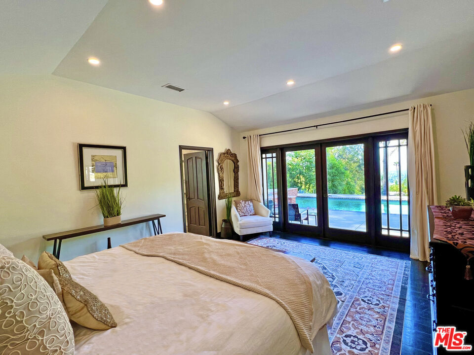 Private gated retreat, off iconic Mulholland Drive. Fully furnished, single-story luxury lease on over 1/2 acre of lush, landscaped grounds. High ceilings throughout, expansive windows, abundant natural light, picture-perfect canyon and city views. Featuring a grand living room with a fireplace, formal dining, gourmet kitchen with Miele & Sub-Zero, breakfast counter, master suite with pool and city views, cedar walk-in closet, spa-like bathrooms with floor to ceiling travertine, lots of closets, separate laundry room, plus 3 additional stylish bedrooms, one in a separate wing of the house. Outdoor oasis with sparkling pool, spa, serene succulent gardens, and tranquil nature sounds. Moments to Beverly Hills, Studio City, legendary hiking trails Tree People, top shops & dining, easy freeway access 405/101. Available short or long term. Best of BHPO living...quiet, private, upscale.