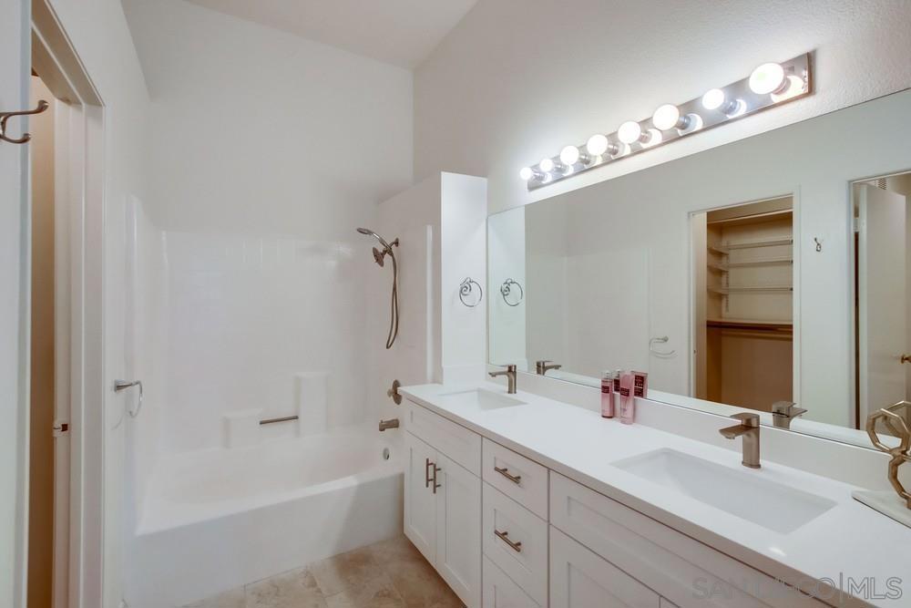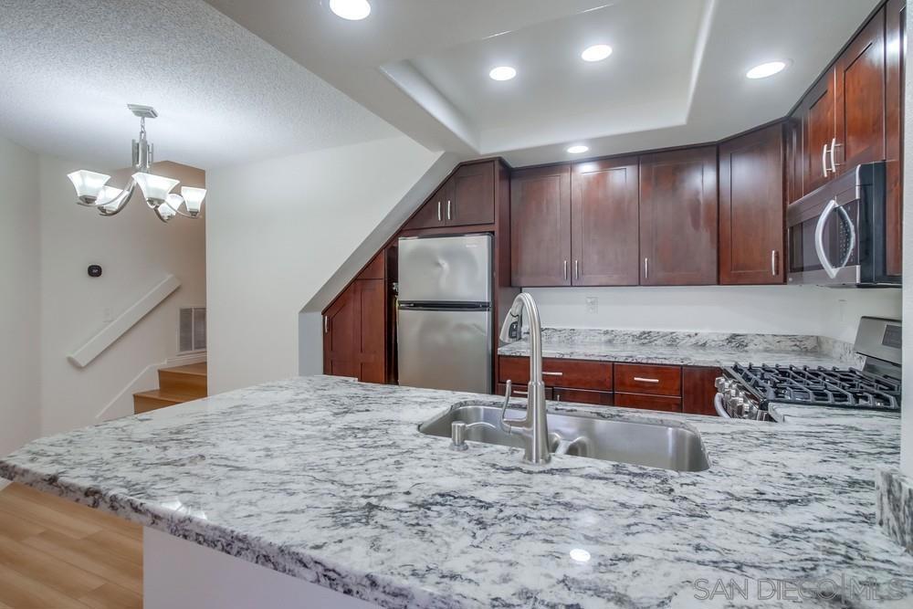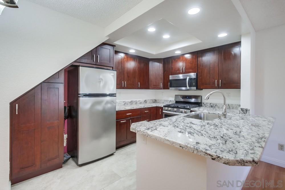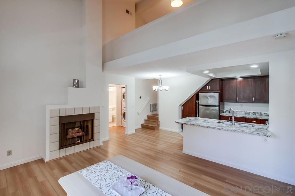 Welcome to the beautifully updated Canyon Bluffs Condo with Loft located on the edge of Sorrento Valley and Mira Mesa. This top-floor 2BR/2BA condo with a spacious loft (optional 3rd bedroom or office) offers unbeatable convenience, just 10 min to Qualcomm and 12 min to UCSD. Freshly painted and featuring new bathroom countertops, vaulted ceilings, and abundant natural light, this home feels open and inviting. The primary suite boasts dual sinks and a large walk-in closet. Highlights include a modern granite kitchen with custom cabinets, a cozy fireplace, an HVAC system, a spacious laundry room, and a private front patio. Two oversized walk-in attic spaces provide incredible storage or potential for expansion. Enjoy assigned parking, ample guest parking, and resort-style amenities including a pool, spa, and recreation room surrounded by lush greenbelts. Close to shopping, dining, and freeways—this home offers the perfect blend of comfort, style, and location.