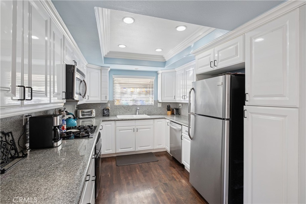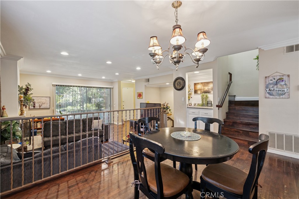 Welcome to Warner Village, where your dream tri-level townhouse awaits! This charming end unit boasts three spacious bedrooms and two and a half bathrooms, perfectly designed within an open floor plan that spans 2,022 square feet. Located in a tranquil location, you’ll enjoy picturesque views of serene streams, and refreshing pools with running water right next to the front door. Step inside to discover a bright living room featuring high ceilings and a cozy fireplace. The kitchen is a chef's delight with elegant granite counters, a delightful balcony, and a convenient eating area. Entertain guests in the formal dining room that leaves a lasting impression. The upstairs bedrooms are generously sized, with the primary bedroom offering a luxurious walk-in closet and its own private balcony. Plus, a versatile utility room provides the perfect space for an office or guest room. The HOA includes water earthquake insurance cable and the internet. The B tax rolls indicate 1,631 square feet, however the builder floor plan was measured as 2022 Sq Ft including the bonus room. Buyer to verify the square footage. One year old air conditioner. New electrical panel. Enjoy the shopping,restaurants,parks and easy access to nearby freeways and beaches.