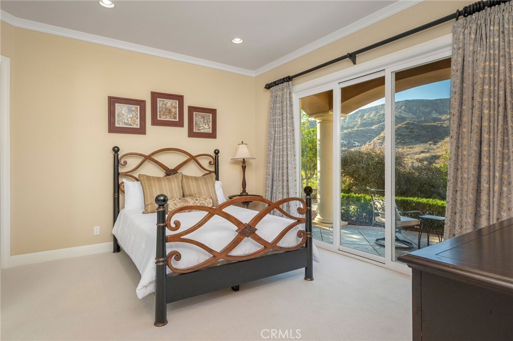 A PRIVATE HILLTOP MEDITERRANEAN/TUSCAN-STYLE LUXURY ESTATE. Perched atop a secluded hill with sweeping mountain views, including the iconic Whiteface Mountain Ridge, this Tuscan-inspired estate blends timeless design, fine craftsmanship, and modern comfort for an exceptional indoor-outdoor lifestyle.The residence offers 5,380 sq. ft. of refined living space on 2.73 private, gated acres. Designed for elegance and function, the home features six rooms: four spacious ensuite bedrooms for comfort and privacy, a serene reading room, and a large home office. Enter through striking wrought-iron doors into a grand foyer with soaring 25-foot ceilings, a dramatic chandelier, arched columns and travertine flooring. A sweeping staircase with decorative wrought-iron railing sets the tone for the refined interiors. Oversized windows flood the home with natural light, enhancing its open ambiance. The chef's kitchen is equipped with Viking appliances, Sub-Zero refrigeration, custom cabinets, and an oversized island ideal for entertaining, along with a prep kitchen and butler's pantry. A custom, temperature-controlled walk-in wine cellar adds a luxurious touch. High-end finishes—hand-distressed hardwood floors, granite, marble, and travertine—elevate the design. The dining and living rooms feature custom copper-toned paint, while the great room has a fully integrated entertainment system. A ground-level guest suite provides comfortable accommodations. The upper East wing offers two bedrooms and a spacious home office, each with breathtaking views. The luxurious primary suite in the West wing features a reading room with a dual-sided fireplace and a balcony overlooking Whiteface Mountain Ridge. The spa-like primary bath showcases stonework, an oversized Jacuzzi tub, and a steam shower. Step outside to enjoy resort-style amenities including a custom pool and spa, an outdoor kitchen, fire pit, basketball court, and an enlarged covered patio for large events. This estate includes expansive patios, walkways, and a roundabout driveway among lush landscaping, palm trees, and an orchard with over 150 fruit trees, 15 grapevines, and raised garden beds. Additionally, it has 32 panels of an 8.16kw solar electric system paid in full. This remarkable estate is a rare opportunity to own a luxurious retreat where elegance and natural beauty converge. Conceived by the distinguished team behind some of Sherwood's finest estates: Cartier Construction, RM Designs, and Sophisticate Interiors.