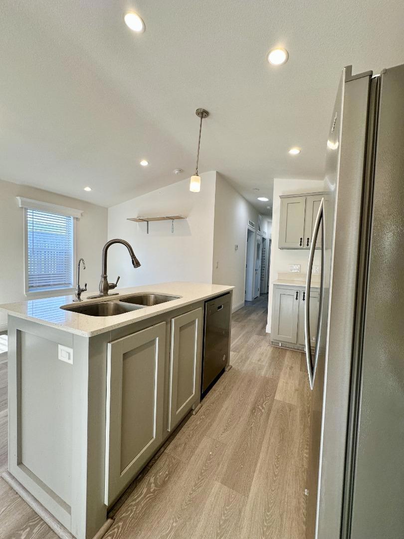 Welcome to this charming 3-bedroom, 2-bathroom, newer home, year 2023 in the vibrant city of San Jose. Spanning 1,007 square feet, this home offers a cozy yet functional living space. The kitchen is a highlight, equipped with modern amenities including a dishwasher, garbage disposal, refrigerator, and an island with a sink, making it a great space for meal preparation and entertaining. You'll appreciate the convenience of the dining area, located within the living room, which is perfect for intimate gatherings. The home features central forced-air heating and a window/air conditioning unit for cooling, ensuring comfort throughout the seasons, and offers the practical benefit of an in-home washer and dryer for laundry needs.
