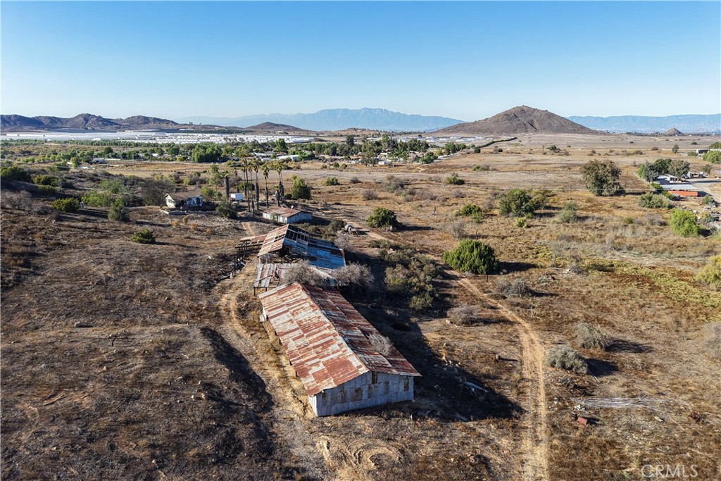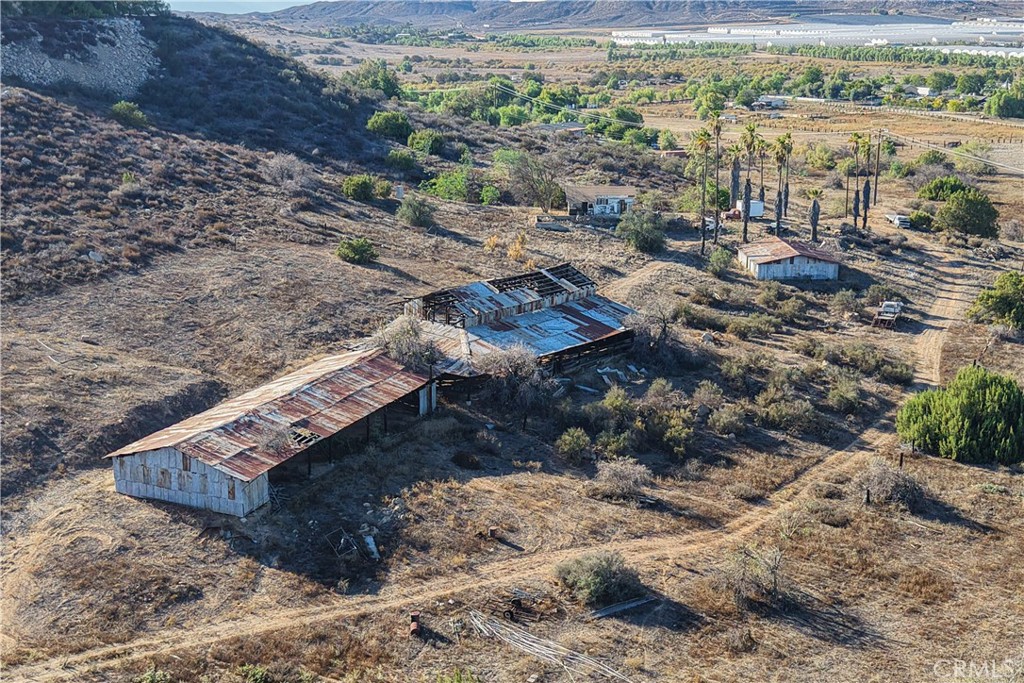 Incredible 30.33 acre property in the desirable Lake Mathews area of Perris! This fully fenced parcel offers endless possibilities for residential, ranch, or agricultural use. The land features two deep-water wells, one regular shallow well, city water, and city electricity. A two-bedroom, one-bathroom stick-built home sits on the property ready for remodeling or use as a guest home. Additional improvements include two large warehouses and a spacious barn (approx. 4,000 sq. ft.) ideal for animals or storage. The property features olive, pomegranate, palm, and eucalyptus trees, adding natural charm and privacy. Enjoy panoramic views, open space, and a peaceful rural lifestyle while still being close to major highways, shopping, and schools. A rare opportunity with excellent infrastructure and development potential!