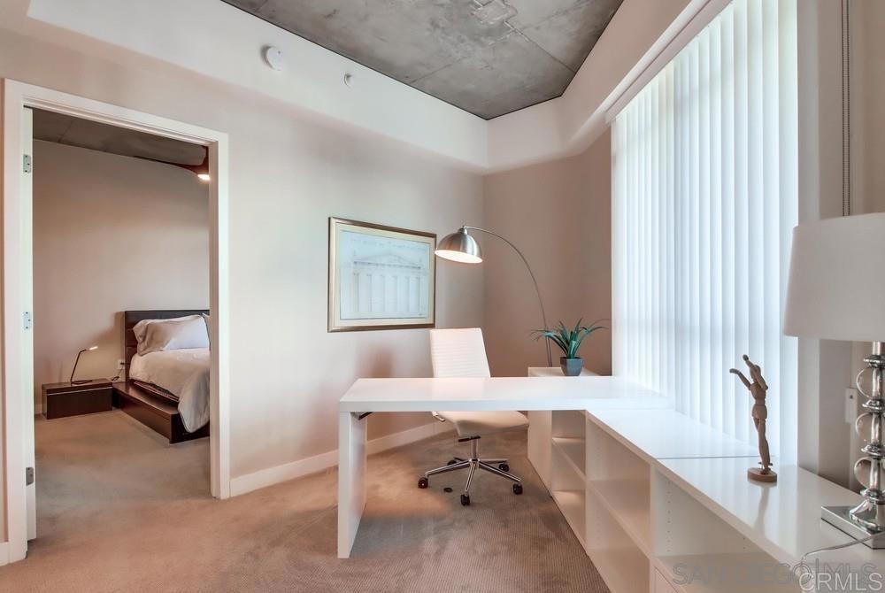 Something very special! Beautiful bright condo "Cortez Blu" offers unique layout at only a few units per floor. This "hard to find" over-sized 1BR/1.5BA boasts a huge private balcony with city views, bonus half-bath, long tiled hallway, contemporary cement ceilings, big walk-in closet, floor to ceiling windows providing plenty of natural light, & TWO(2) storage units @ underground parking area! Kitchen comes with stainless appliances, granite surfaces, and under cabinet lighting. Cortez Blu is ideally located atop Cortez Hill with easy access to freeways(5 & 163), Balboa Park, the Gaslamp Quarter, Little Italy, and Petco Park! NO ONE BELOW!!