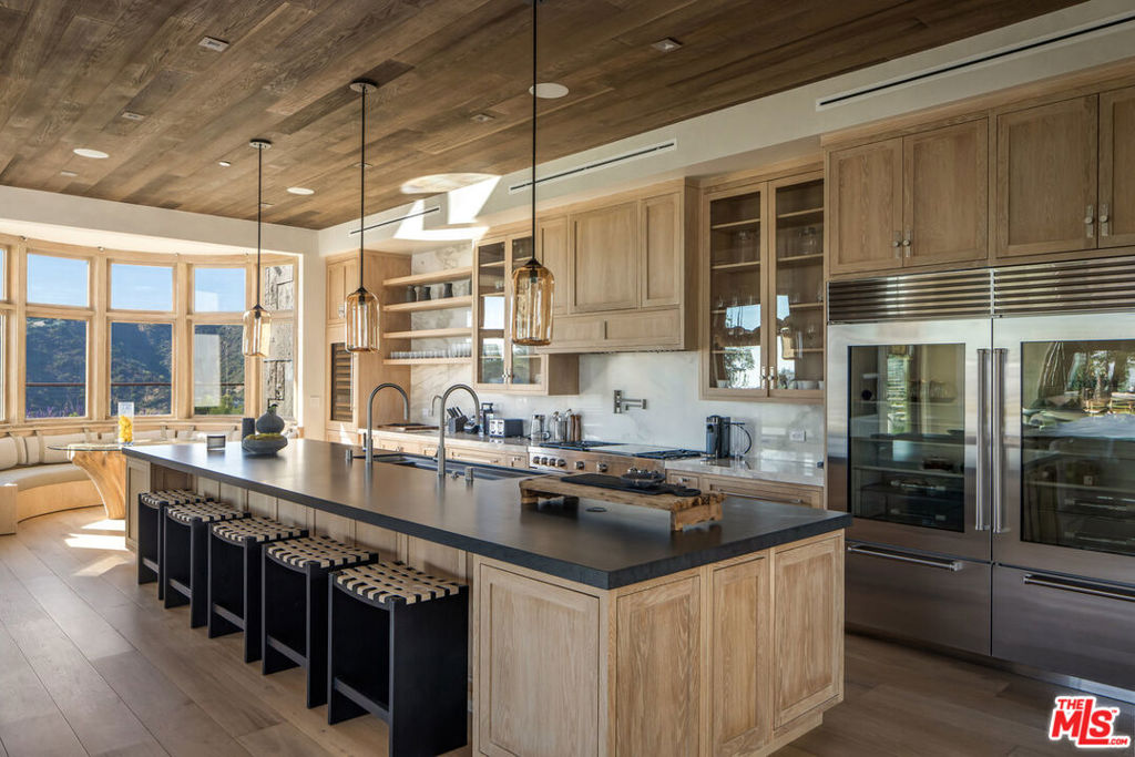 Experience ultimate luxury living in this exclusive Beverly Hills estate, available for rent. This private, gated compound offers resort-style amenities on a sprawling lot. Upon arrival, you'll be greeted by a striking waterfall and lush landscaping, with ample parking for up to 10 cars. The estate features a hand-tiled Balinese pool, spa, and fire pit, complemented by stunning 180-degree city and ocean views. Enjoy outdoor dining with a full kitchen, expansive grassy yard, and sports/pickleball court. A wellness spa and gym with floor-to-ceiling glass doors open to breathtaking grounds. Inside the spacious main house, you'll find luxurious details including a great room with panoramic views, a gourmet kitchen with a 12-ft island, and a wood-paneled office with a bar. The home offers two primary suites, each with luxurious baths and terraces, plus three additional ensuite bedrooms and a vast outdoor deck. Additional features include a 2-bedroom, 2-bath guest apartment, a state-of-the-art theater, a tequila tasting room, a poker room, a 2000-bottle wine cellar, and a ~3000-sf finished garage with a glass elevator. With perfect finishes throughout, this estate is designed for those seeking an unparalleled rental experience in Beverly Hills.