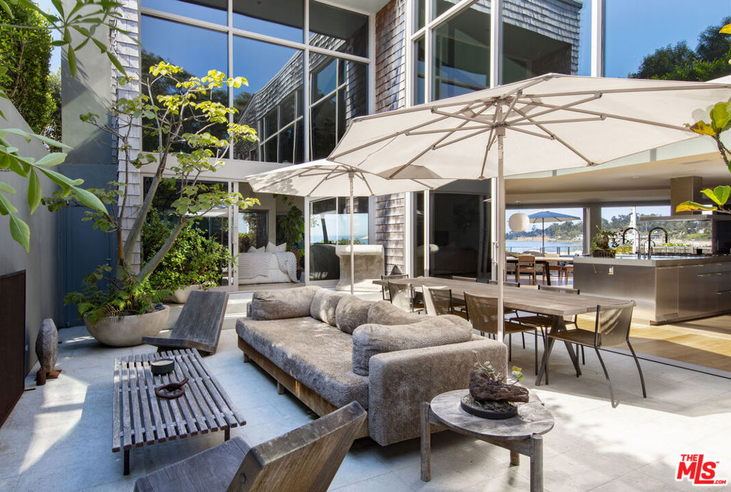Welcome to the ultimate oceanfront estate! Stunning contemporary architecture & finishes highlight the ever-evolving grace of the Pacific & offer an extraordinarily luxe and laid back home, epitomizing the California Dream. Expertly poised, the home's position captures an overly expansive view of the coast that spans well beyond its apx 77' of beach front. An intelligent design ensures that dramatic ocean views are seen from nearly every room of the residence, all of which open to outdoor spaces. Whether on the expansive seaside deck, the private rooftop patio, or by the fireplace of a central enclosed courtyard, the ocean breeze floats throughout the home with ease. A beautiful guest house & a lit tennis court round out this magical seaside compound. FURNITURE IS AVAILABLE SEPARATELY.