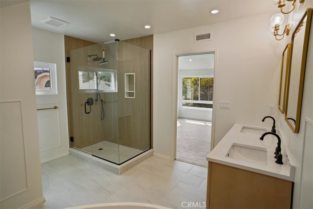 Located in the heart of the Burbank Rancho is this equestrian home. This fully remodeled Spanish-style home features 4 bedrooms and 3 bathrooms across 2,400 square feet of bright, airy living space. This property has a 3-horse stable with turnout and is in close proximity to Griffith Park and Disney Animation Studios. Inside, a vaulted-ceiling entryway and elegant Spanish tile foyer lead to a fully updated kitchen with brand-new appliances. The home has been thoughtfully redesigned throughout, with all-new windows, hardwood floors, recessed lighting, HVAC and more. All three bathrooms have been fully remodeled with premium finishes. The spa-like primary suite features dual sinks, a freestanding soaking tub, a walk-in shower, and a cozy gas fireplace one of three in the home. The fourth bedroom, located downstairs with its own private entrance and bathroom, is ideal for an in-law suite, au pair/nanny quarters, or guest accommodations. Outside, equestrian enthusiasts will appreciate the full 3-horse barn and two small pastures. The spacious backyard also includes a lawn, mature orange and fig trees, and a large pergola perfect for entertaining. The two-car garage provides ample storage, and the home sits on a quiet residential street with easy access to riding and walking trails. The property is pet-friendly. Other amenities include: two car attached garage with direct access, laundry room inside the home, three stables with turnout, HVAC, and recessed lighting.