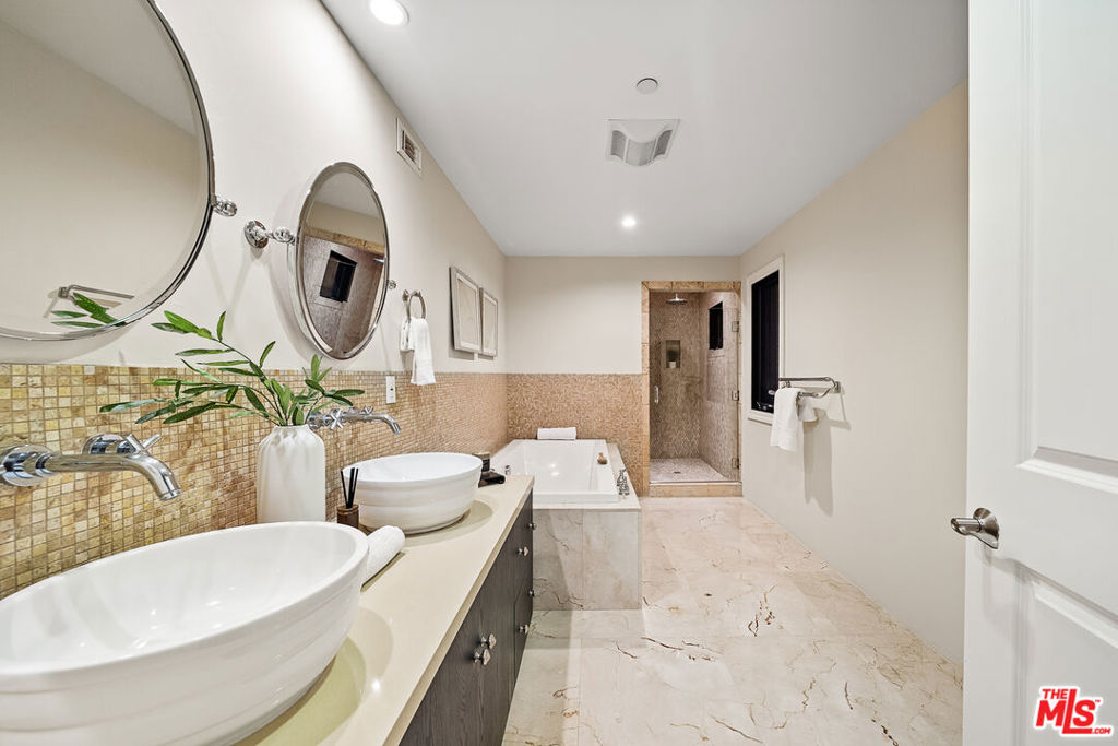 MOVE IN READY . Welcome to your new exceptionally elegant and immediately impressive Mediterranean-style home! This quiet and heavily tree-lined neighborhood residence has a soft creamy tone throughout and offers 4 spacious bedrooms, 4 bathrooms, and a 3-car garage, designed with both comfort and style in mind. An abundance of natural light and airy design, as well as 4 private balconies, makes every corner a Zen experience. This home is located with quick access to the 405 and 101 freeways and is a brief walking distance to the Hollywood Bowl and incredible walking/jogging trails around the beautiful Hollywood Reservoir. Step outside you are greeted with a flowing water-wall as you enter a full patio with a built-in beautifully decorated authentic Brazilian churrasqueira to BBQ your own churrasco style cuisine! You may further enjoy the dual-temperature DimensionOne swim-spa on a custom-made elevated deck with access from the master bedroom balcony. Opportunity to develop the unique and significant amount of land extending up the entire hillside that is part of the property up behind the house (similar to the neighbors who have made playgrounds, viewing points, botanical gardens, etc.). Original owner has meticulously maintained the home, including the 2023 full replacement of the entire HVAC system for heating and air condition with a 10-year warranty, 2023 tankless water heater replacement also still under warranty, a new premium washer and dryer, as well as many other enhancements making this gem of a home feel like its original debut!