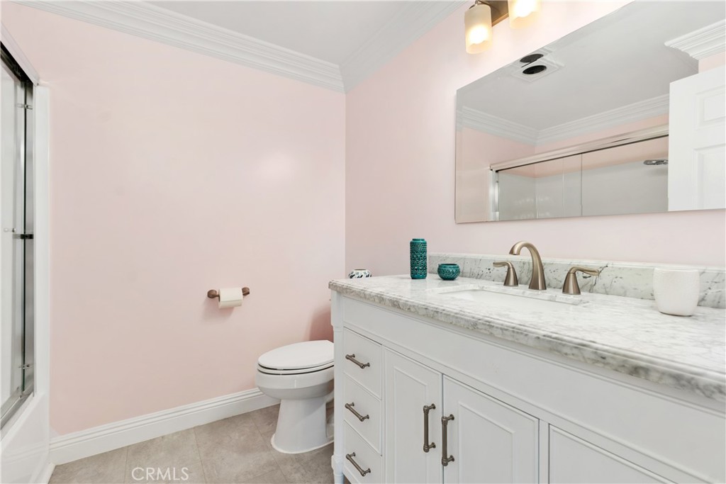 Welcome to 53 Woodleaf, an inviting upper-level home located in central Woodbridge. Perfectly situated across from Windjammer Park and the pool, this residence offers a sought-after Woodbridge location with open greenbelt views and abundant sunlight. Step inside to discover a bright and welcoming interior featuring a spacious living area with vaulted ceilings, crown molding, rich wood-style flooring, and expansive dual-pane windows that frame serene park views. The open layout flows seamlessly into the dining area. The modern kitchen has been beautifully remodeled with white shaker cabinets, quartz countertops, stainless-steel appliances, recessed lighting, and smart pull-out storage. The primary suite, featuring two spacious closets and an upgraded en-suite bathroom with dual vanities, is located along its own hallway. A second hallway leads to two secondary bedrooms, both bright and beautifully maintained. A hallway laundry closet adds everyday convenience to this well-designed layout. Additional upgrades include a Google Nest system for comfort and efficiency and a newly updated roof. Residents of Woodbridge Village enjoy exceptional amenities, including two lakes with docks, two beach lagoons, 22 pools, 16 spas, 23 tennis courts, 4 pickleball courts, and 13 waders, along with parks, playgrounds, sports courts, and scenic walking trails — all part of the Woodbridge Village Association. Close to top-rated Irvine schools, shopping, and dining, this home offers comfort, convenience, and a welcoming community environment.