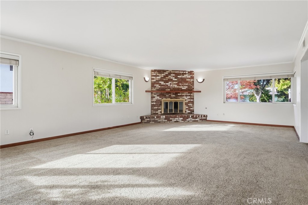 MID-CENTURY RANCH "HIGHLANDS" – Welcome to this spacious single-story home offering timeless curb appeal, classic brick accents, and a warm mid-century feel. Set behind mature landscaping and a brick-lined walkway, this home blends original character with a highly functional layout designed for comfort and everyday living. Featuring approximately 2,618 sq ft, this home offers 5 bedrooms + 3.5 bathrooms + office with a desirable split-bedroom floor plan—ideal for families, guests, or multi-generational living. Two bedrooms are located on one side of the home and two on the other, each connected by Jack-and-Jill bathrooms, creating smart separation while keeping the layout practical and connected. The private primary suite includes an en-suite bathroom and sliding door to patio. At the heart of the home, enjoy a generous living room filled with natural light and anchored by a classic brick fireplace, perfect for gatherings or relaxing nights in. The kitchen offers abundant of custom wood cabinetry, clean counters, built-in shelving and a large oven and cooktop, making it a true central hub for entertaining and everyday meals. French doors and wide windows enhance the indoor/outdoor flow and connect beautifully to the backyard. Additional highlights include a long driveway with excellent parking flexibility and potential Jr. ADU opportunity (buyer to verify). With space, versatility, and classic charm, this is a rare opportunity to own a home that offers both lifestyle and long-term value.