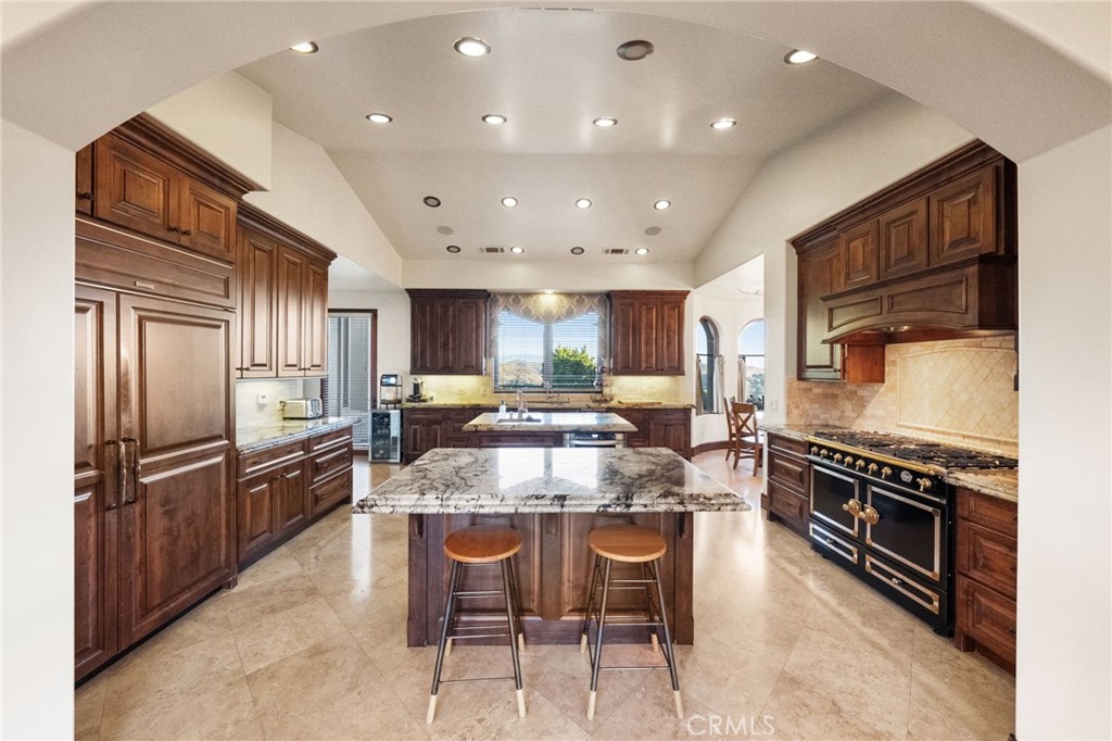 Welcome to Villa Girasole, a breathtaking Tuscan-inspired estate gracefully perched atop 15.6 acres in Temecula’s prestigious De Luz community. Evoking the romance of Italy’s hill towns, this architectural masterpiece blends old-world craftsmanship with modern luxury, surrounded by rolling vineyards, olive trees, fruit orchards, and hundreds of mature, producing avocado trees that blanket the hillsides in timeless beauty. Spanning approximately 6,588 square feet, this single-level residence was designed for both grand entertaining and intimate living. The thoughtfully curated floor plan features six bedrooms, seven bathrooms, a private executive office, a state-of-the-art home theater, and the signature Nexus tower. The tower boasts a stunning architectural focal point of the property, offering a curved staircase, arched windows, and panoramic balcony views of the Temecula Valley. A separate, fully appointed casita with its own entrance, kitchen, living room, bedroom, and bath provides luxurious accommodations for guests or extended family. At the heart of the home lies an extraordinary open-air piazza, an architectural centerpiece that connects every main living space. The saltwater pool and spa are sheltered within this elegant courtyard, framed by an outdoor fireplace, built-in BBQ, and a retractable projector for movie nights beneath the stars. This piazza was intentionally designed as the social core of the estate, offering a space equally suited for serene mornings or lively gatherings. Inside, the attention to detail is unmatched. Vaulted wood-beamed ceilings, handcrafted brick archways, and intricate stonework create a sense of timeless permanence. The gourmet kitchen is a culinary showpiece, featuring dual center islands, a La Cornue range, built-in refrigerator, walk-in pantry, and an effortless flow into both casual and formal dining areas. The primary suite serves as a tranquil retreat, complete with a cozy fireplace, spa-style bathroom, soaking tub, and views that stretch over the groves and valleys beyond. Additional highlights include a six-car garage, four tankless water heaters, a private well with a 5,000-gallon storage tank, and thoughtfully placed olive and fruit trees enhancing the estate’s agricultural charm. Villa Girasole is not just a home; it is a statement of elegance, privacy, and craftsmanship. A true sanctuary where architectural artistry meets the serene beauty of Temecula.